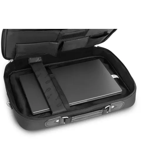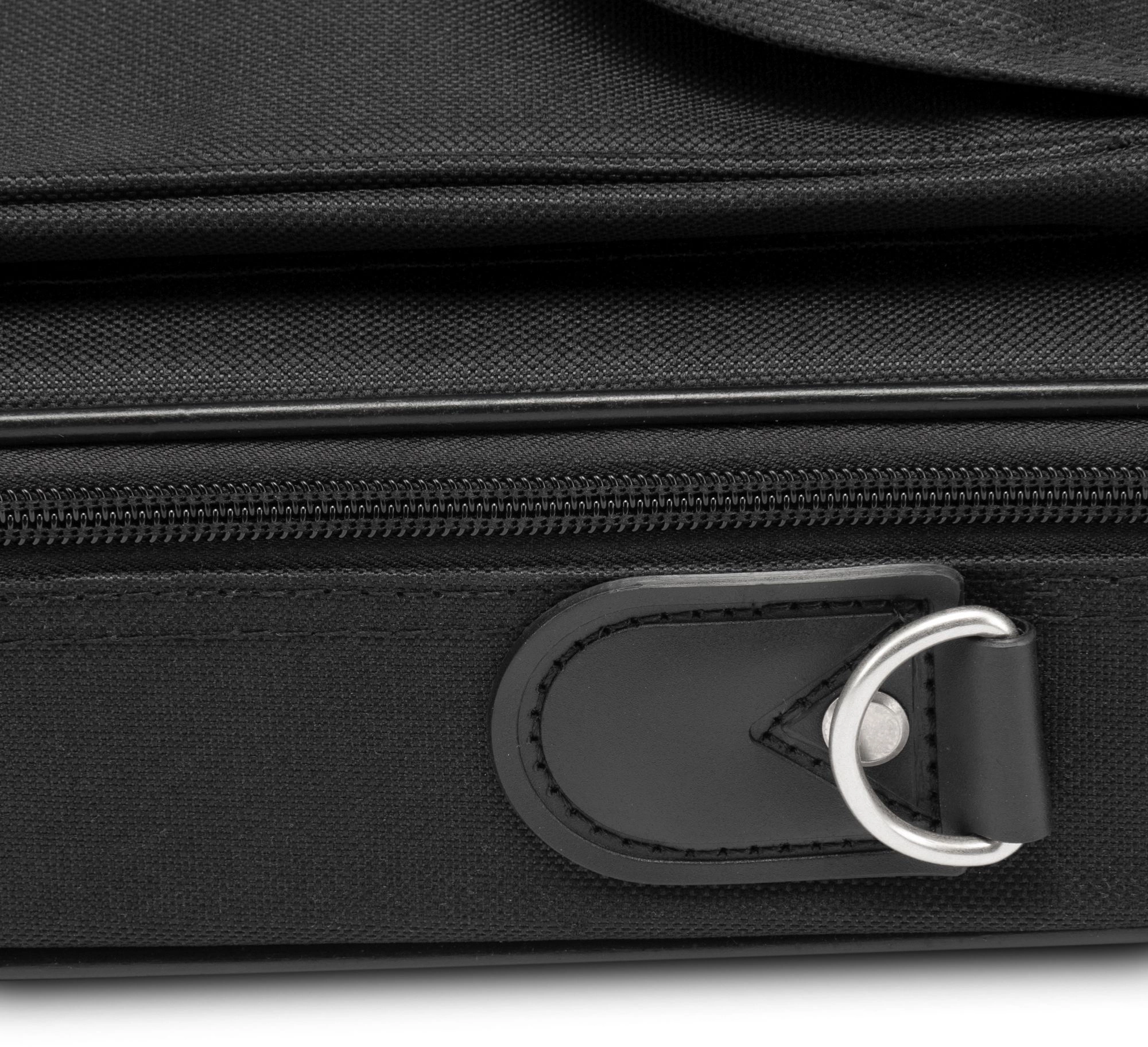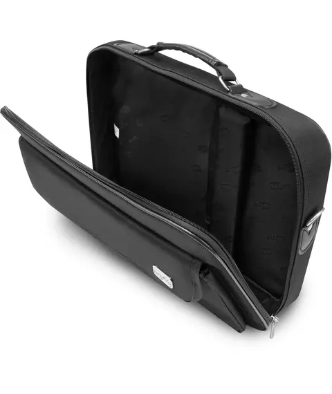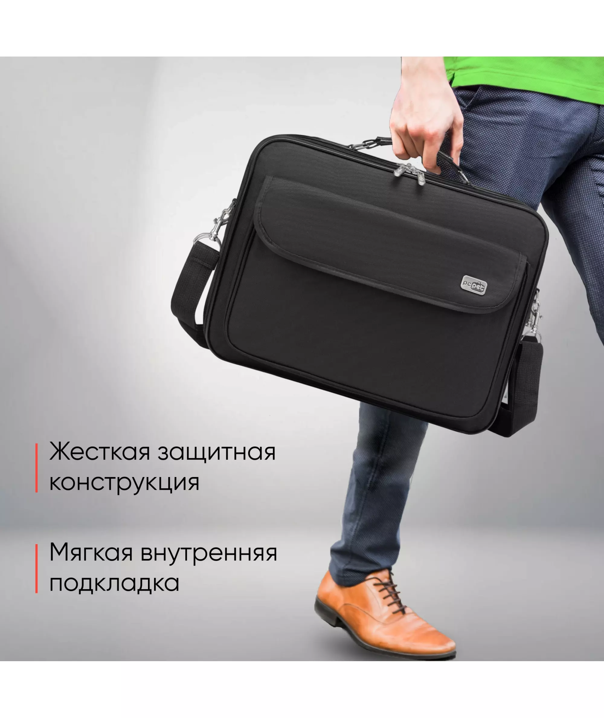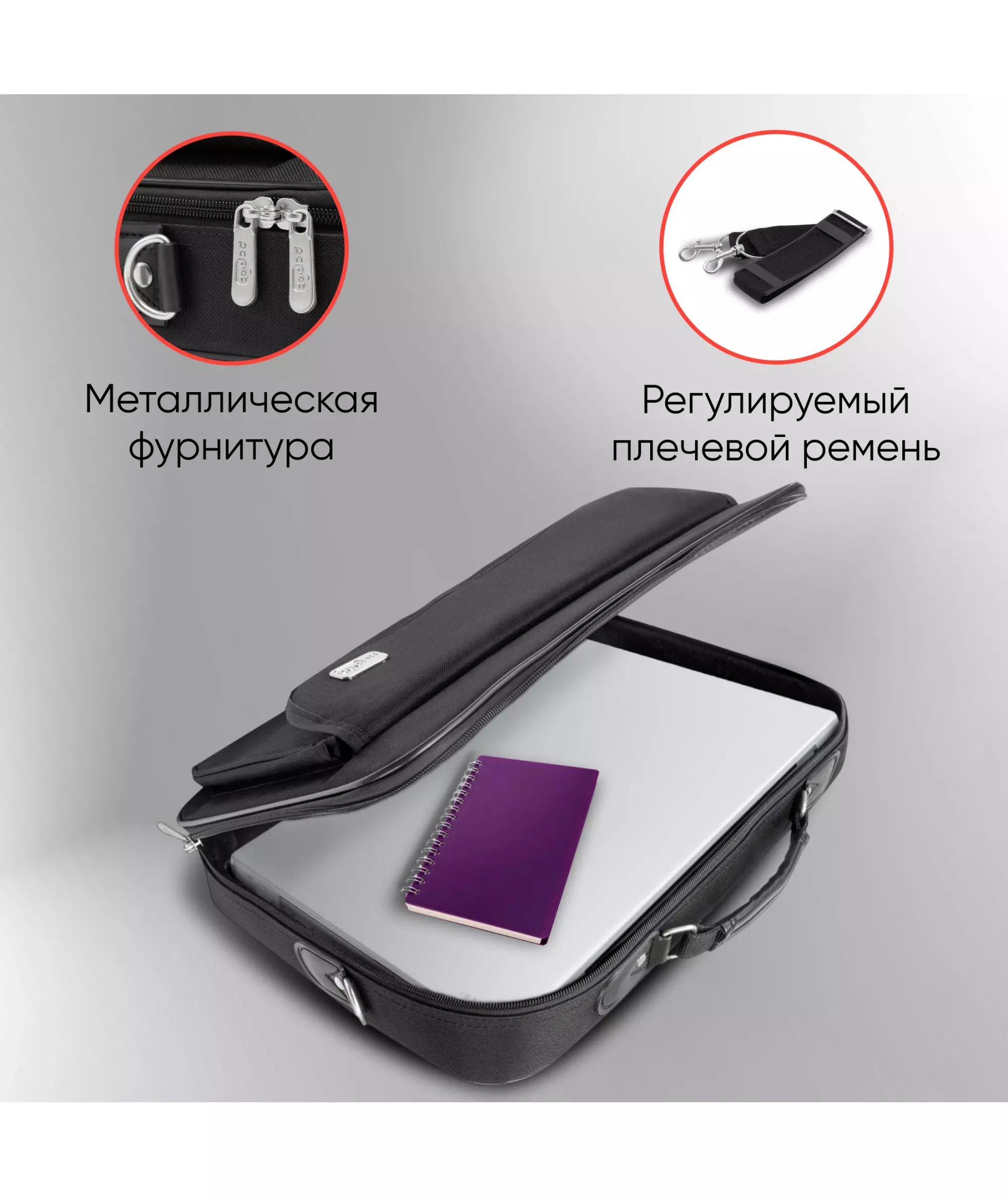 Удобная сумка классического дизайна для ноутбуков с экраном 15,4 дюйма. В основном отделении предусмотрены съемная перегородка и специальный ремешок для плотной фиксации внутри. Также внутри есть несколько полезных отделений для принадлежностей и личных вещей.