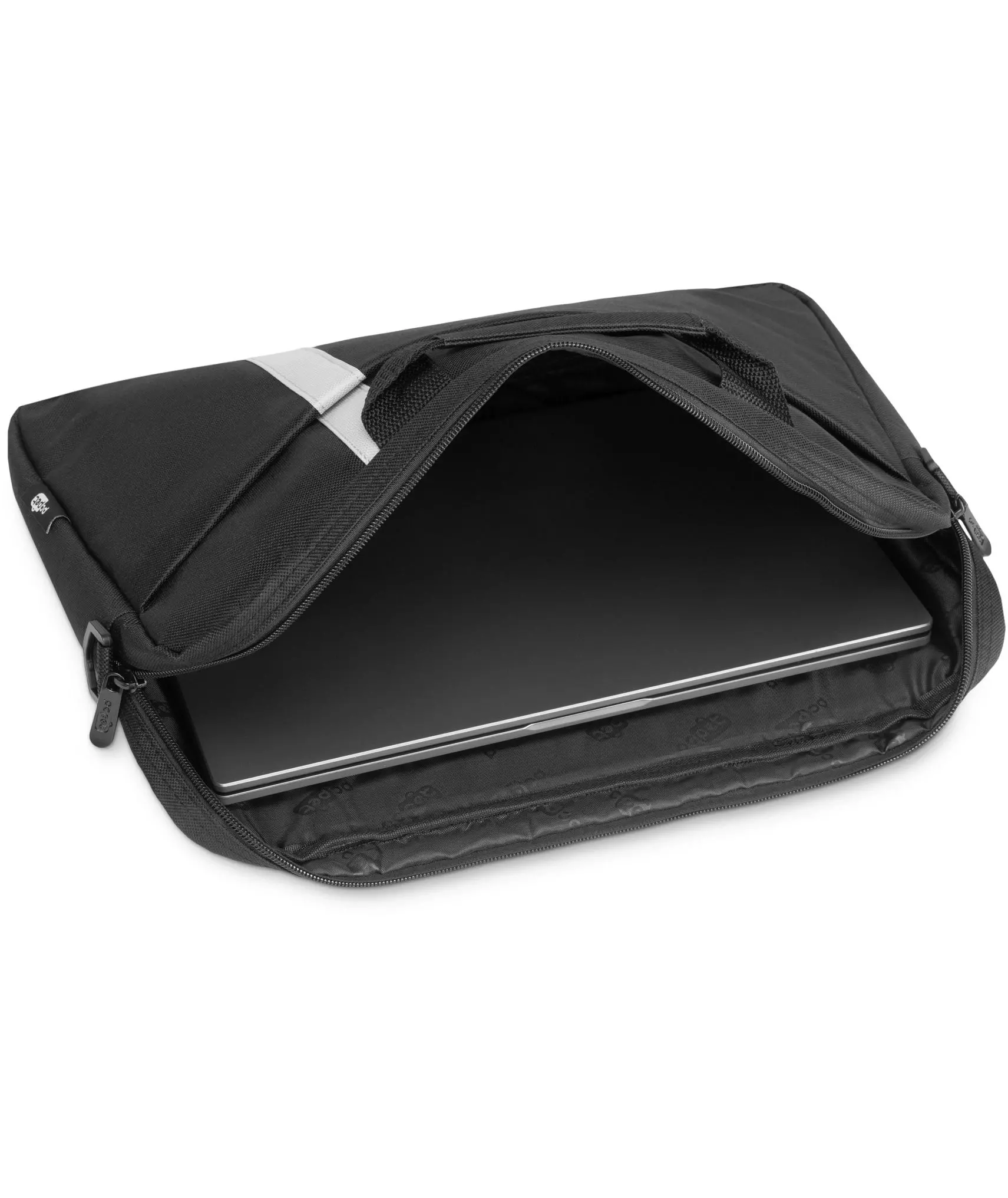 Сверхтонкая и легкая сумка для ноутбуков с экраном 15,6 дюйма. Основное отделение и передний карман закрываются на молнию. Внутри сумка выделана мягким материалом, под которой находится особый наполнитель, который предохраняет устройство от повреждений.