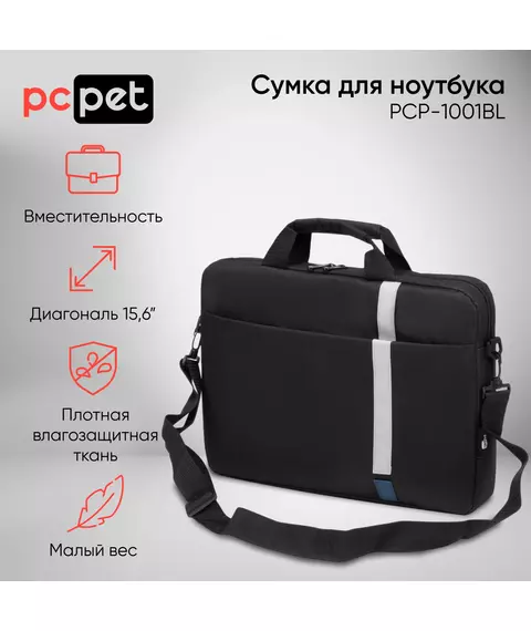 Сумка для ноутбука PC Pet HQ Classic 15.6" черный/синий полиэстер [PCP-1001BL]