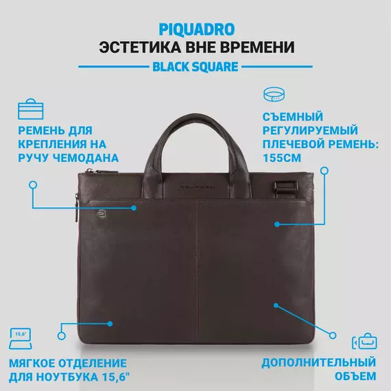 Деловая сумка Piquadro Black Square с отделением для ноутбука темно-коричневый натур.кожа [CA4021B3/TM]