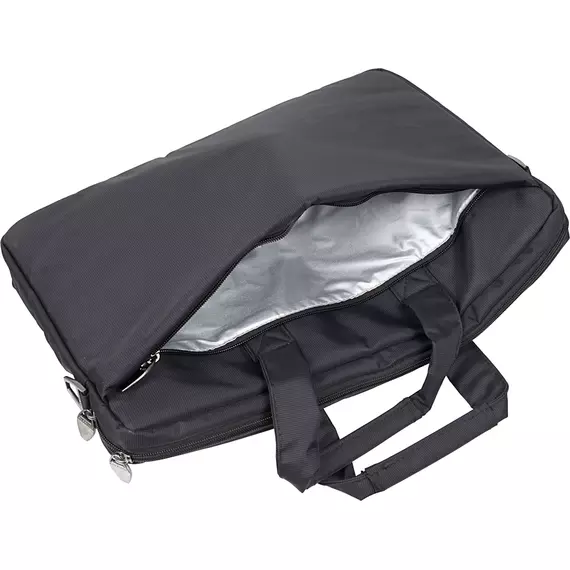 Сумка выполнена из плотного водоотталкивающего синтетического материала и имеет утолщенные стенки для лучшей защиты ноутбука от случайных ударов и царапин, а также от пыли и влаги. Два дополнительных внутренних отделения помогут удобно разместить все необходимые документы и планшет до 10.1".