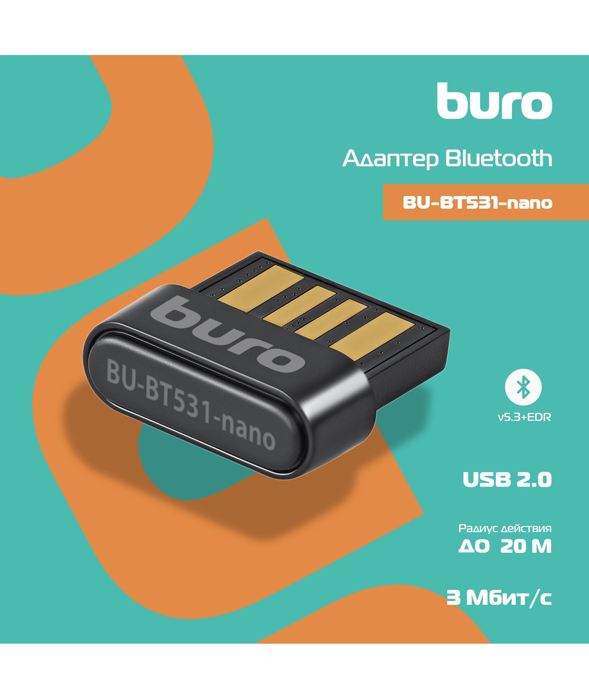 Адаптер USB BURO BU-BT531-NANO BT5.3+EDR class 1.5 20м черный