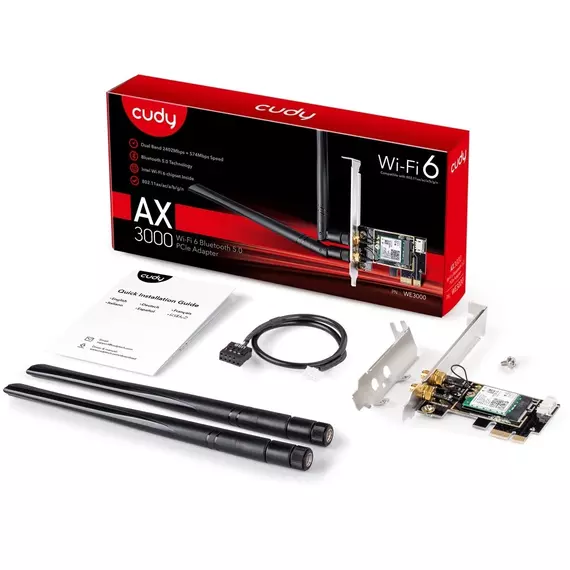 Сетевой адаптер Wi-Fi + Bluetooth Cudy WE3000 AX3000 PCI Express (ант.внеш.съем) 2ант.