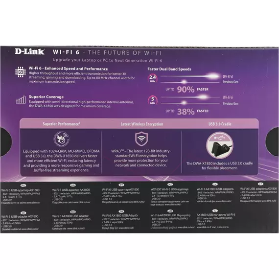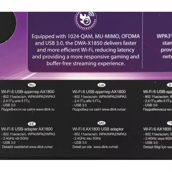 Сетевой адаптер Wi-Fi D-link DWA-X1850/A1A AX1800 USB 3.0
