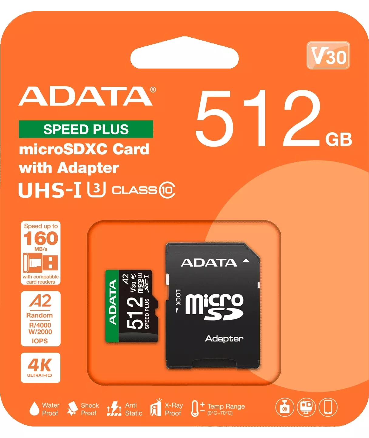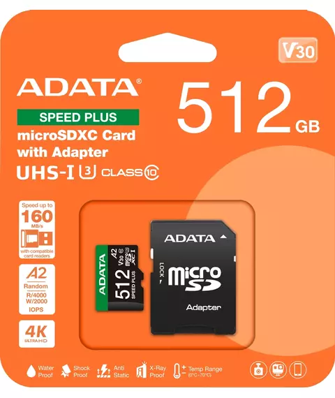 Флеш карта microSDXC AData 512GB Speed Plus V30 A2 + adapter [UD512GUI3V30A2SP-RA1]