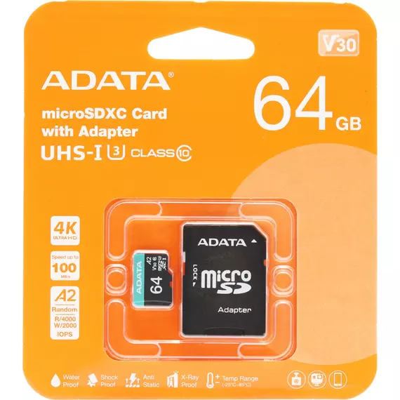 Карта памяти microSDXC AData 64Gb Premier Pro + адаптер [AUSDX64GUI3V30SA2-RA1]