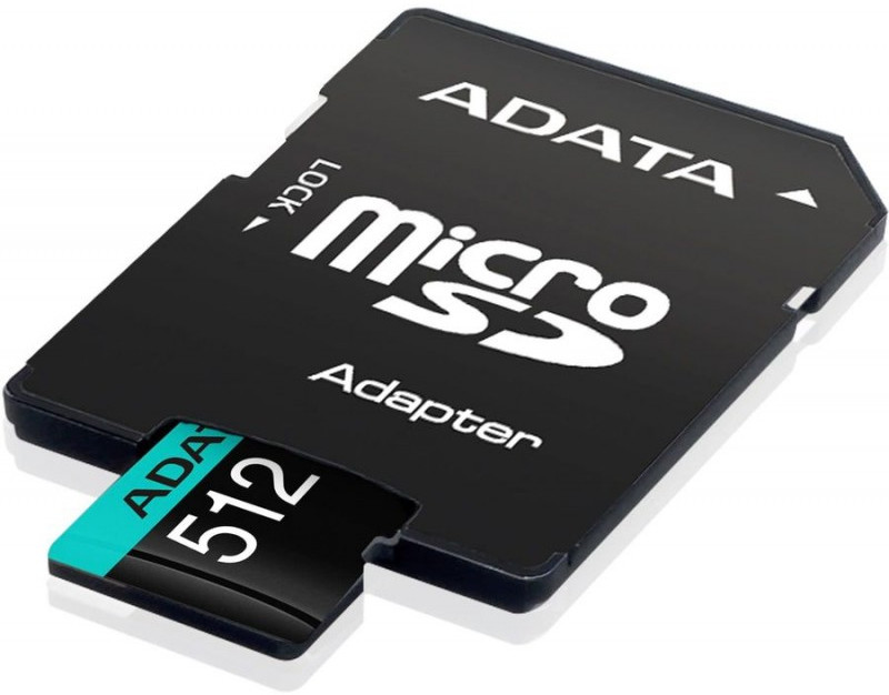 Карта памяти micro SDXC AData Premier Pro 512Gb UHS-I U3, 100 МБ/с, Class 10, переходник SD [AUSDX512GUI3V30SA2-RA1]