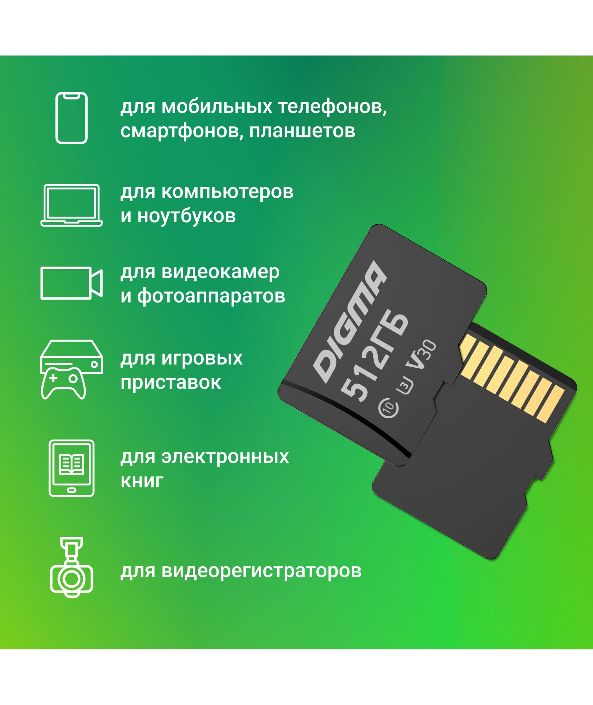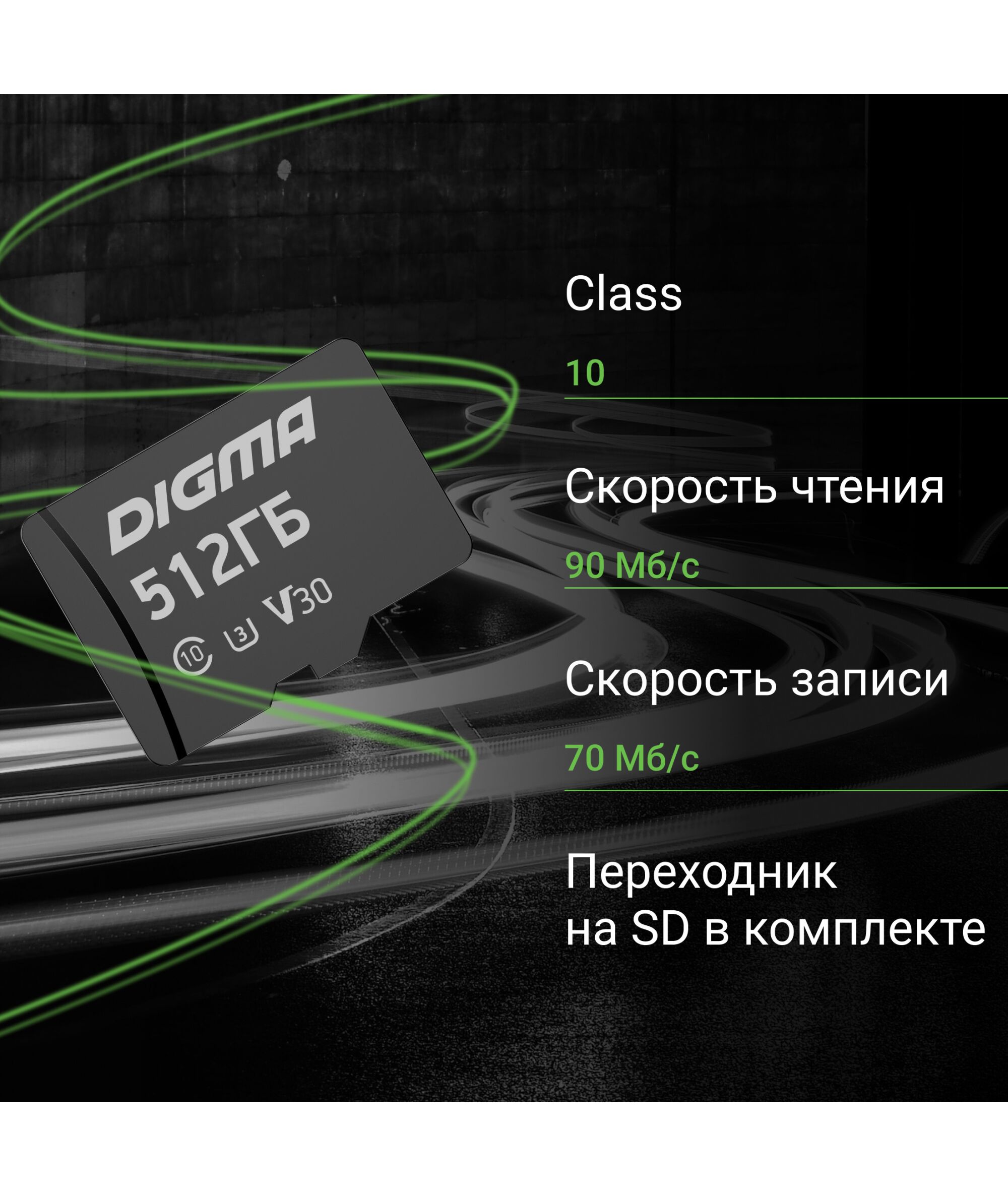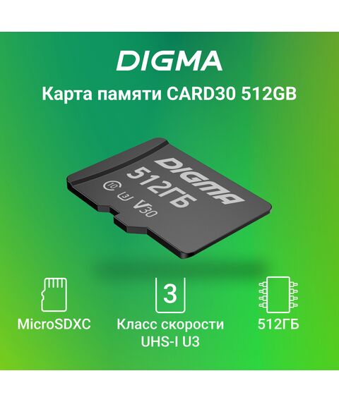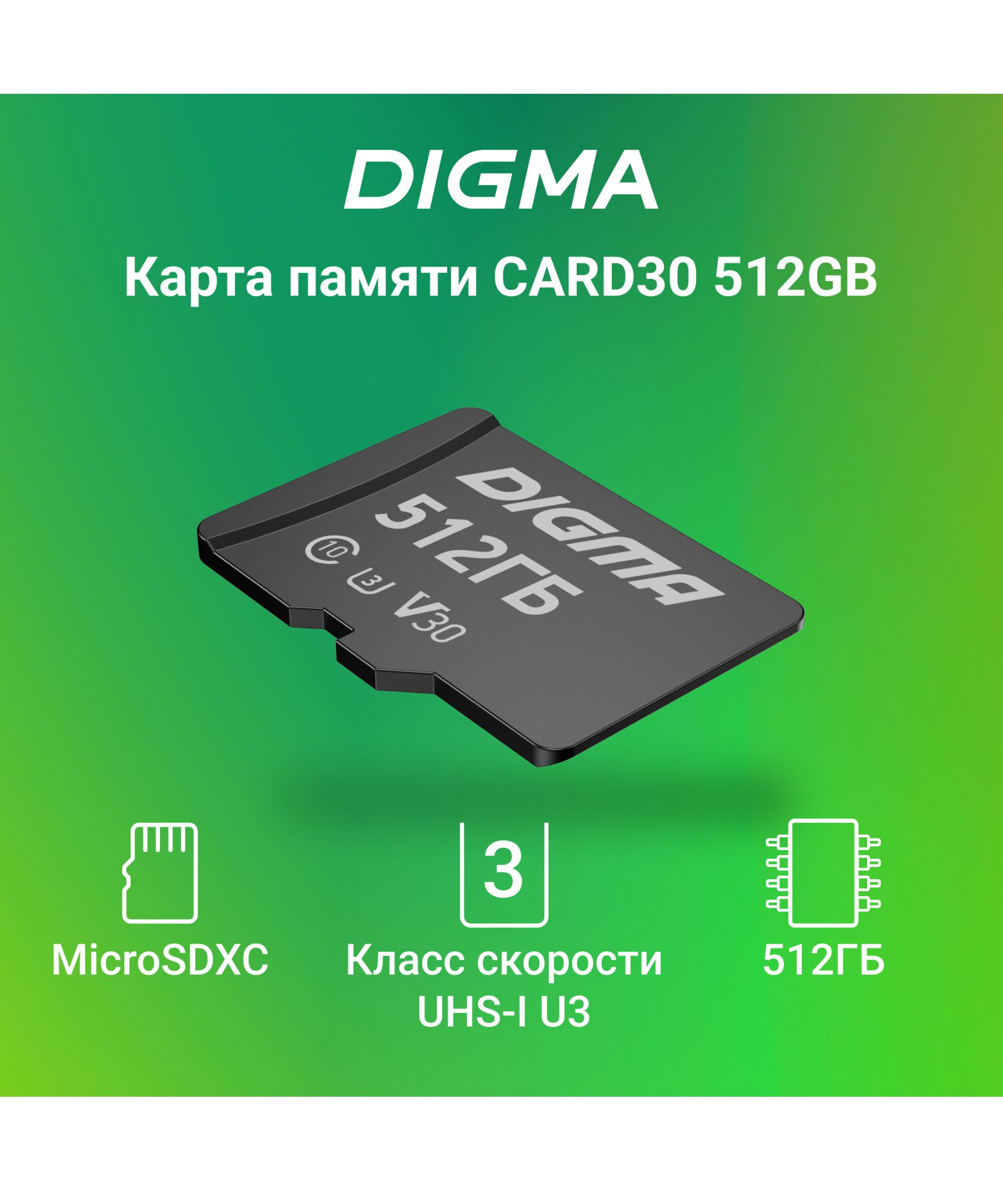 Карта памяти microSDXC Digma 512Gb CARD30 V30 + адаптер [DGFCA512A03]