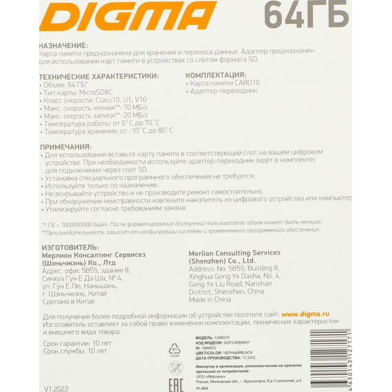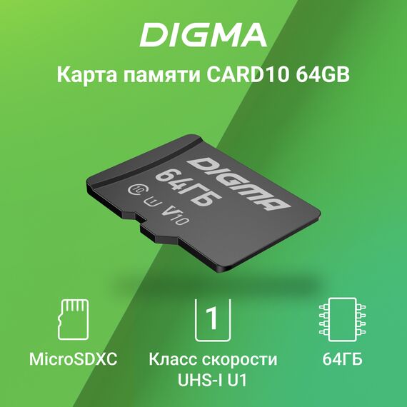 Наличие товара Digma 64Gb CARD10 V10 [DGFCA064A01]