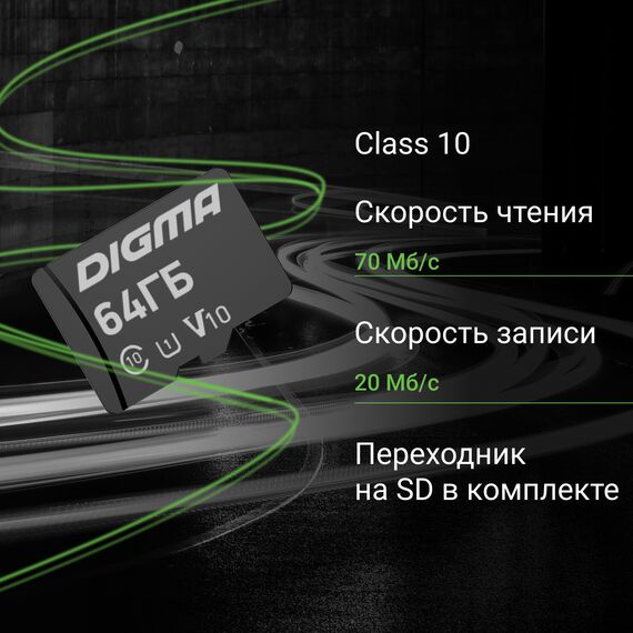 Карта памяти microSDXC Digma 64Gb CARD10 V10 + адаптер [DGFCA064A01]