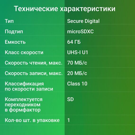 | Класс скорости | UHS-I U1 |