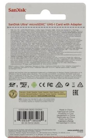 - Модель: SDSQUNR-064G-GN3MAнайти похожую карту памяти
