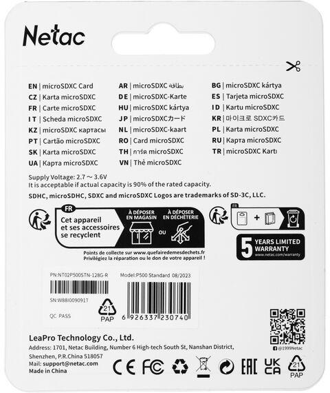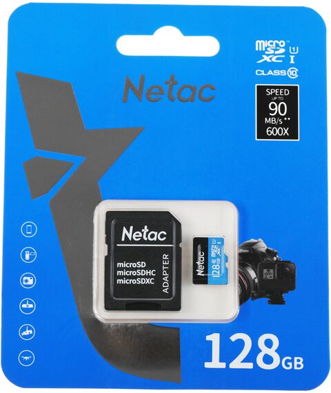 Флеш карта Netac 128GB P500 microSDXC + adapter [NT02P500STN-128G-R]