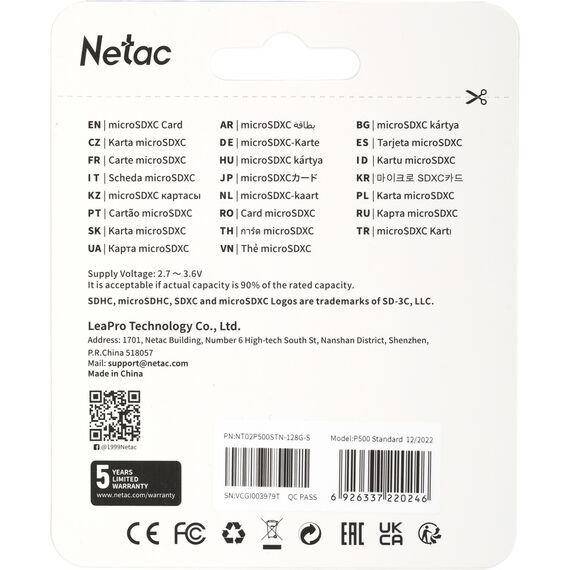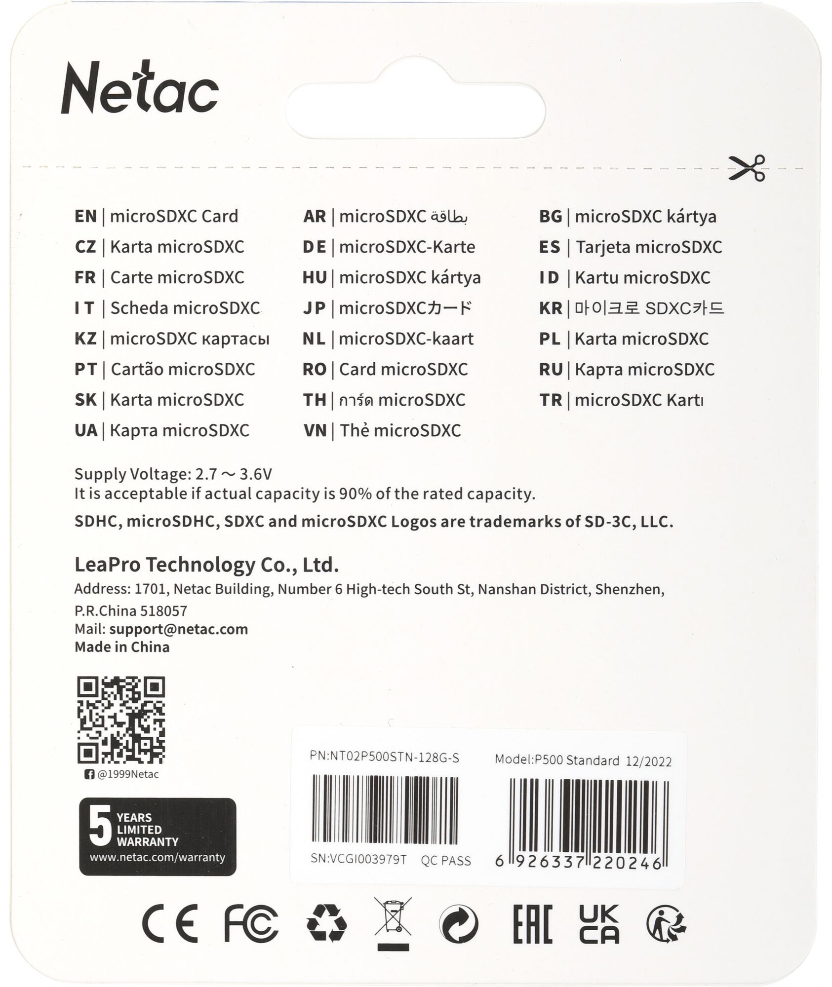 Флеш карта Netac 128GB P500 microSDXC w/o adapter [NT02P500STN-128G-S]