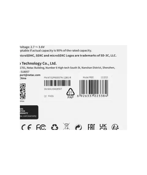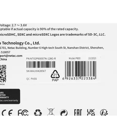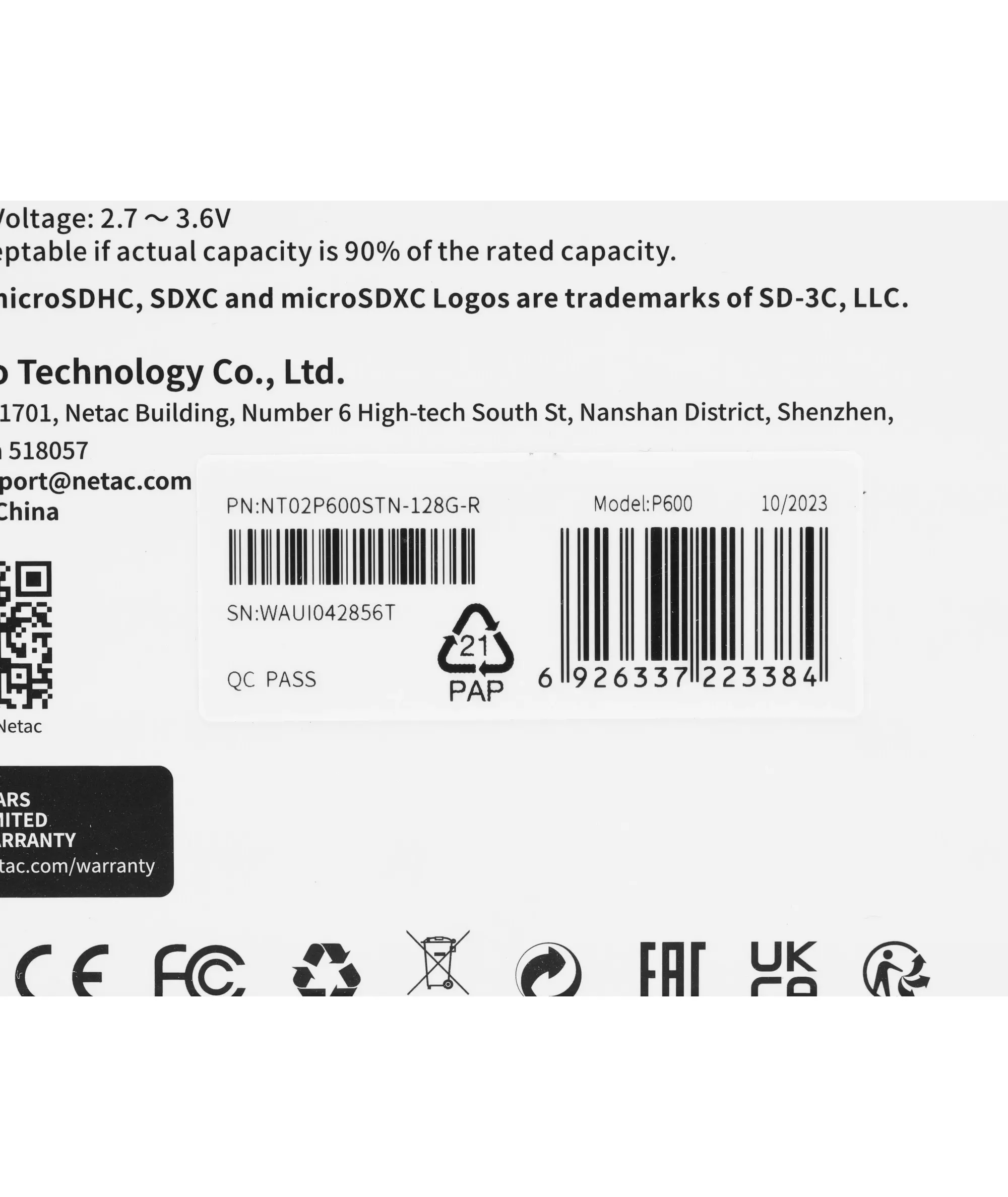 Флеш карта SDXC Netac 128GB P600 без адаптера [NT02P600STN-128G-R]