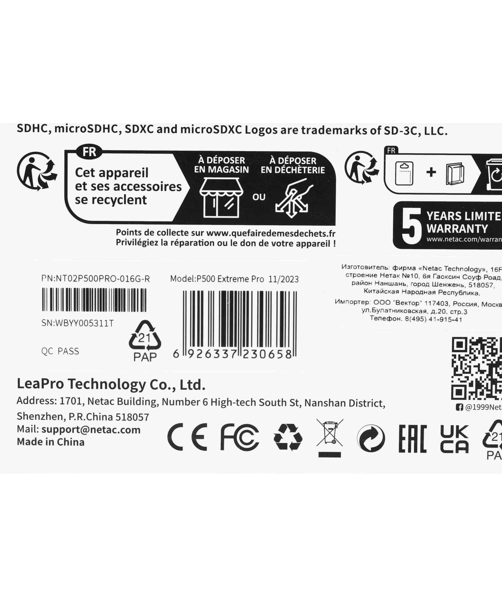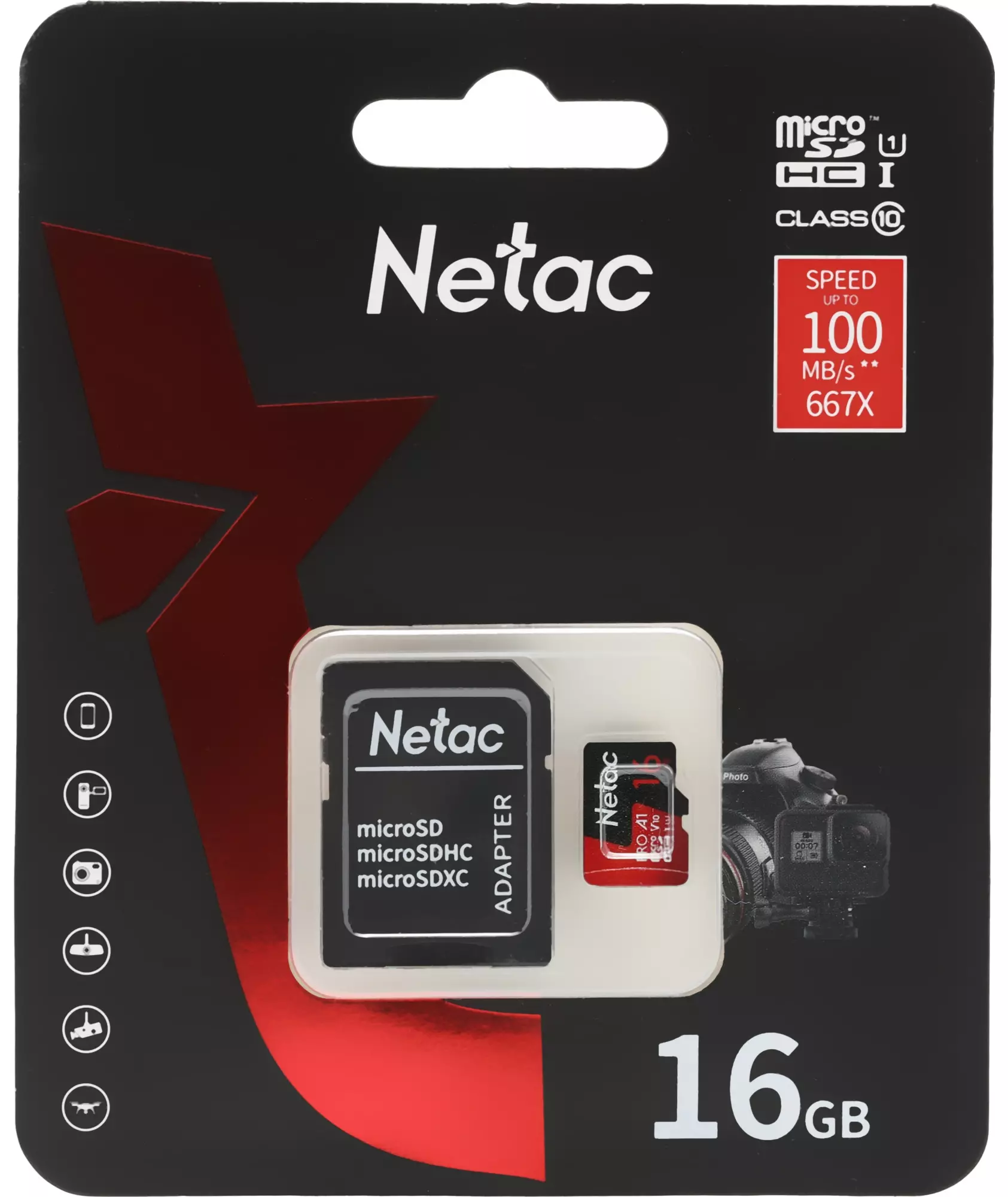 Описание Netac 16GB P500 Extreme Pro V10 A1 [NT02P500PRO-016G-R]