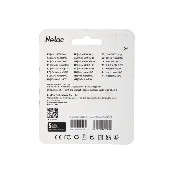 Флеш карта microSDXC Netac 256GB P500 Extreme Pro + адаптер [NT02P500PRO-256G-R]