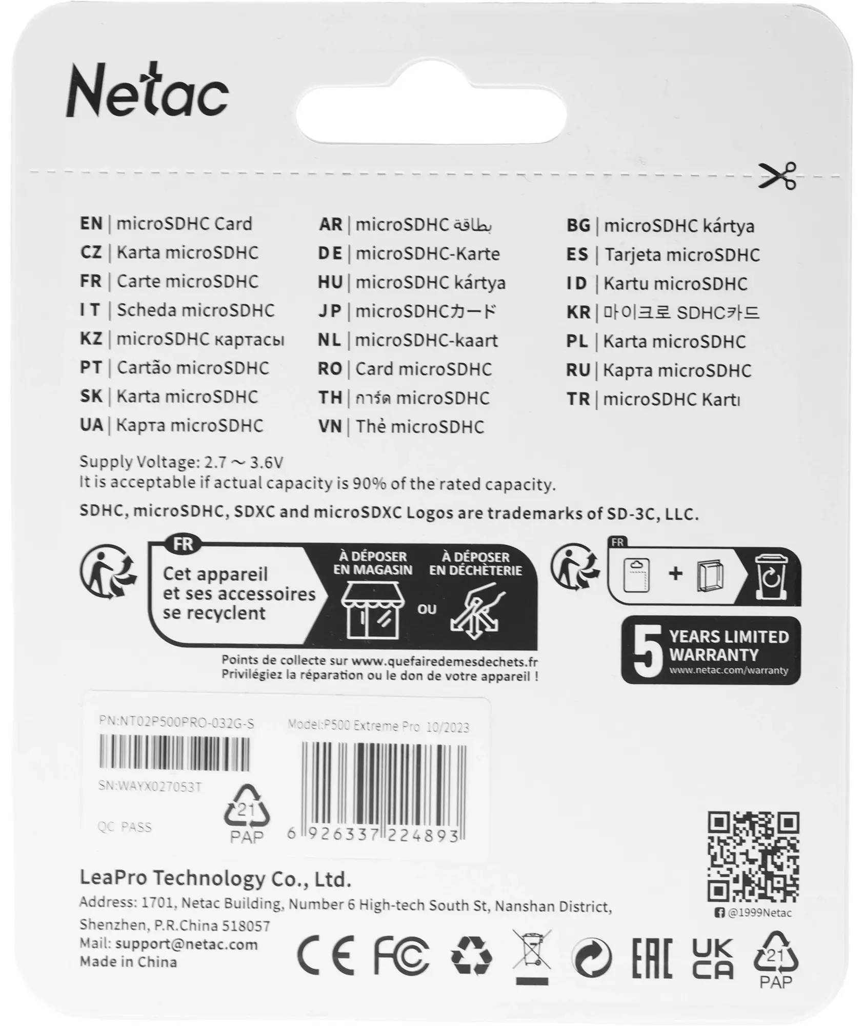 Описание Netac 32GB P500 Extreme Pro [NT02P500PRO-032G-S]