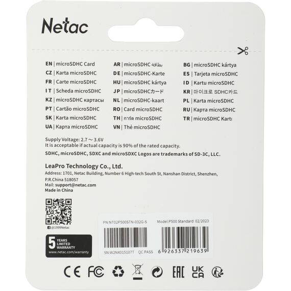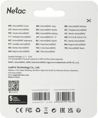 Флеш карта microSDHC Netac 32GB P500 [NT02P500STN-032G-S]