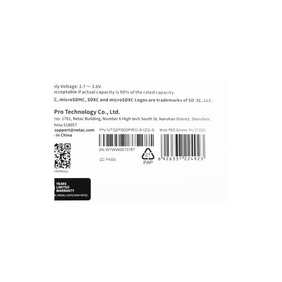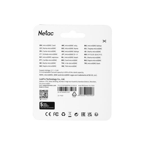 Флеш карта microSDXC Netac 512GB P500 Extreme Pro [NT02P500PRO-512G-S]