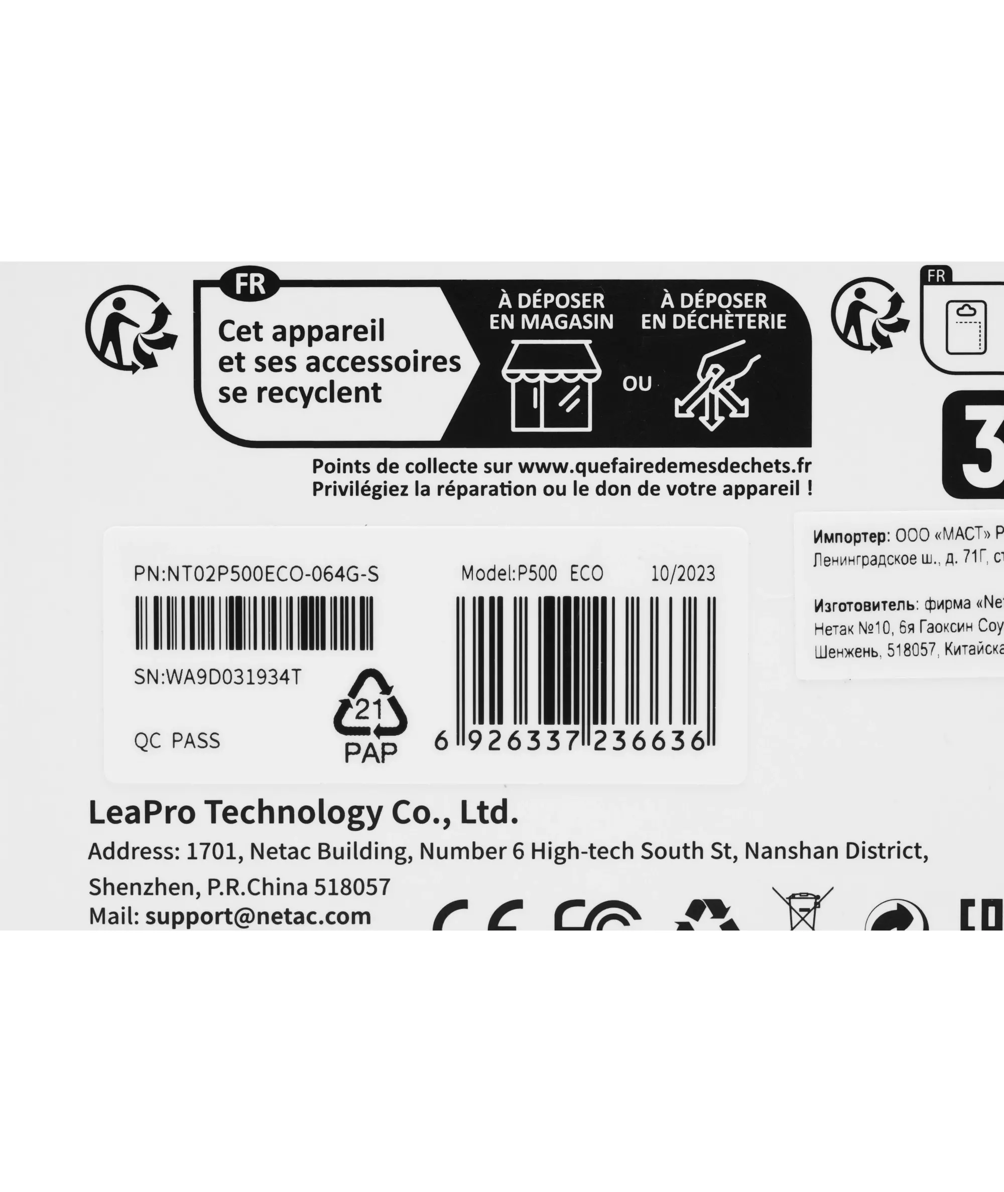Описание Netac 64GB P500 Eco [NT02P500ECO-064G-S]