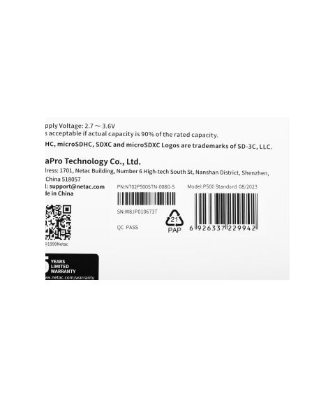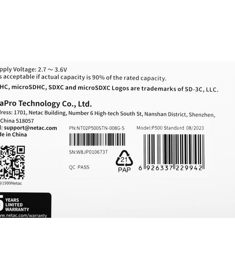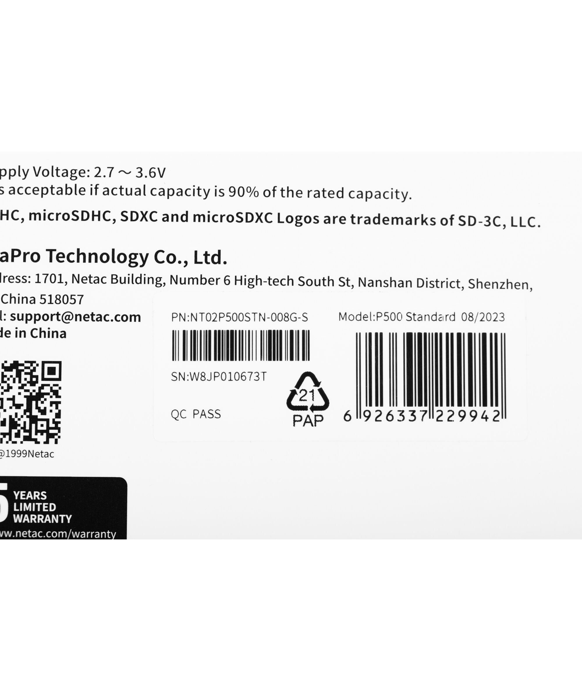Наличие товара Netac 8GB P500 [NT02P500STN-008G-S]
