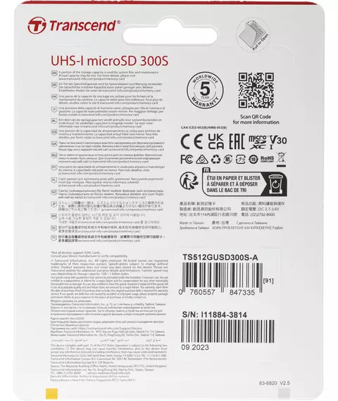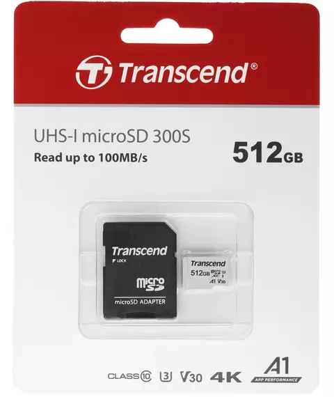 Карта памяти microSDXC Transcend 512Gb 300S + адаптер [TS512GUSD300S-A]