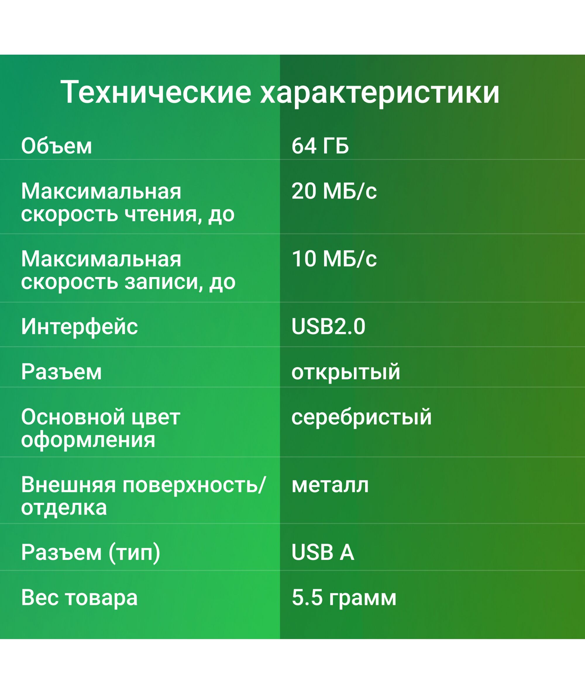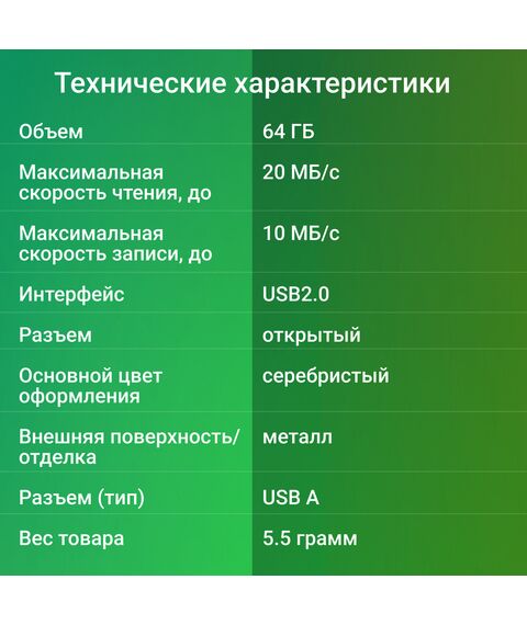 | Объем | 64 ГБ |