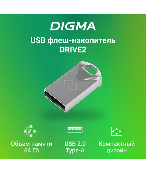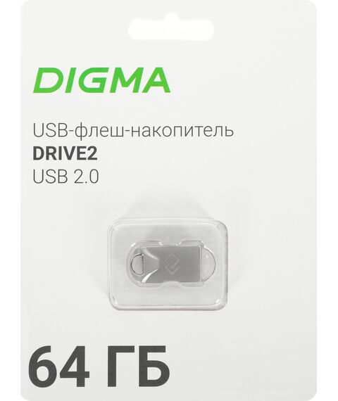 Флеш-диск Digma DRIVE2 64Gb USB2.0 серебристый [DGFUM064A20SR]