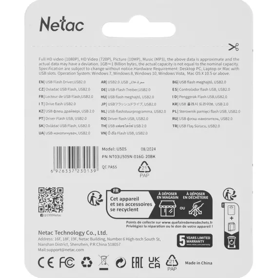 Описание Netac 16GB U505 [NT03U505N-016G-20BK]