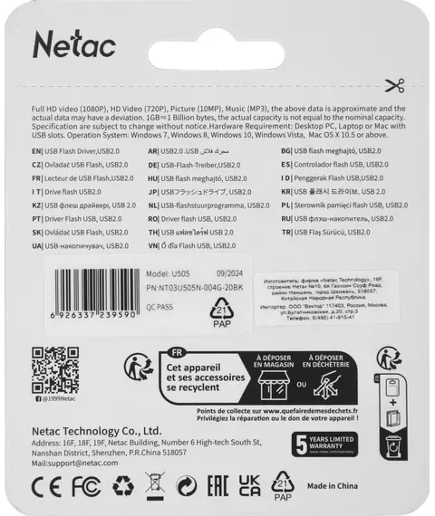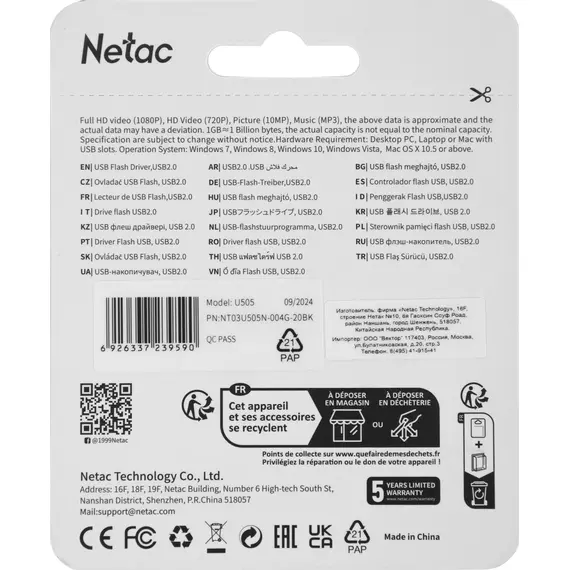 Описание Netac 4GB U505 [NT03U505N-004G-20BK]