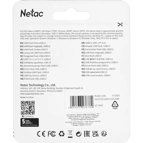Флеш-диск Netac 512Gb USB3.0 синий/белый [NT03U182N-512G-30BL]