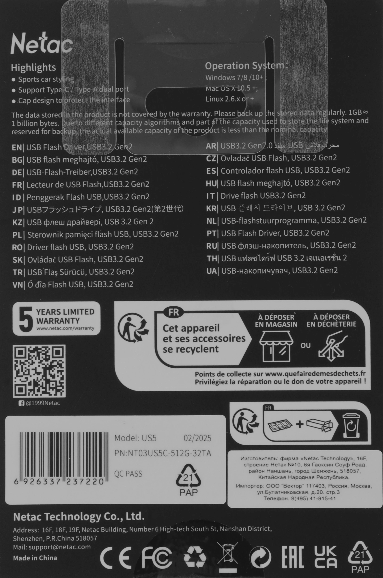 Описание Netac 512GB US5 [NT03US5C-512G-32TA]