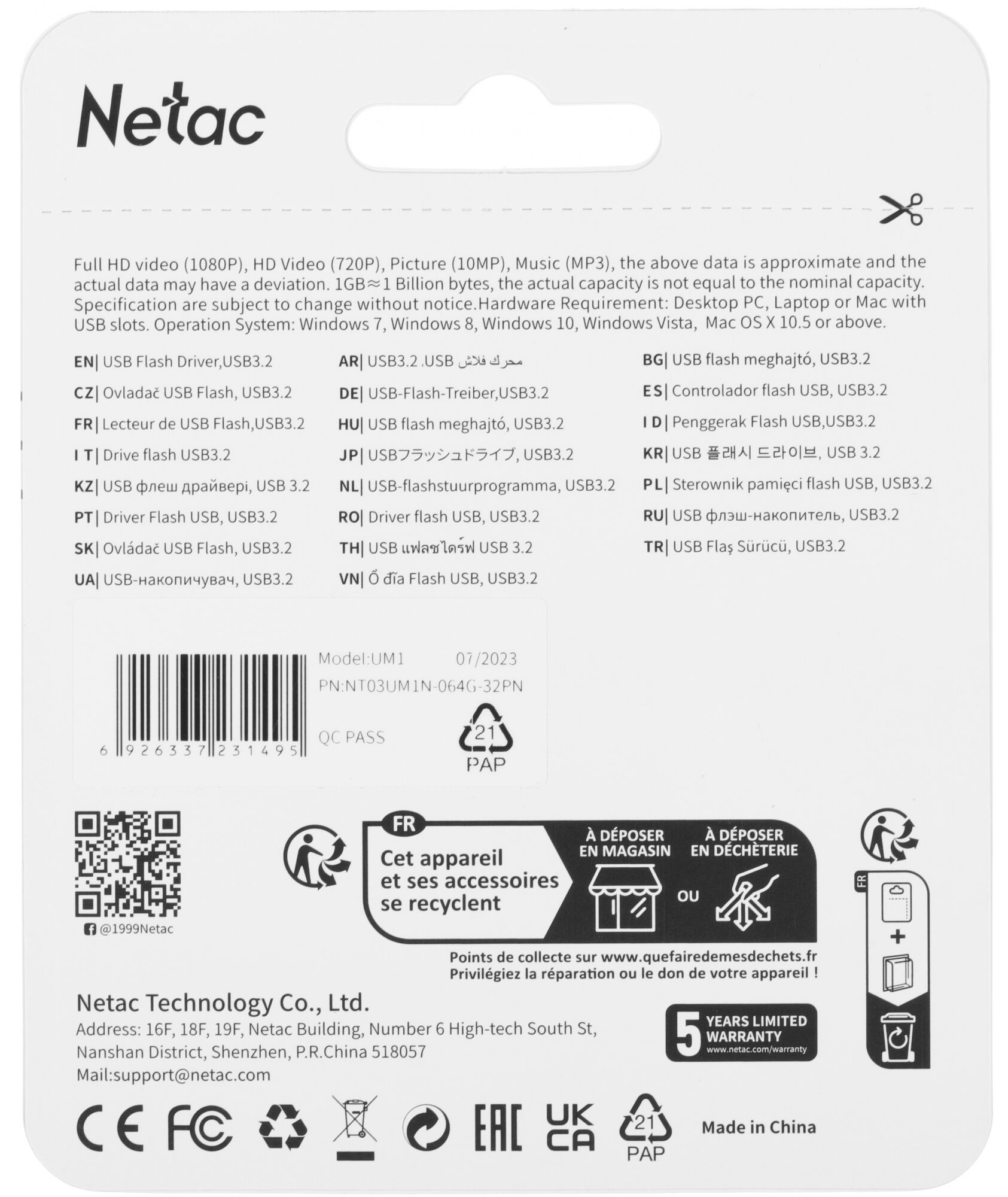 Описание Netac 64Gb [NT03UM1N-064G-32PN]