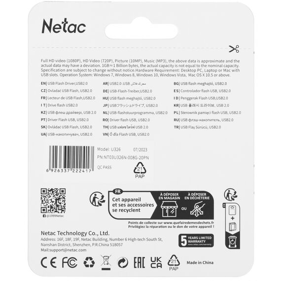 Описание Netac 8Gb U326 [NT03U326N-008G-20PN]