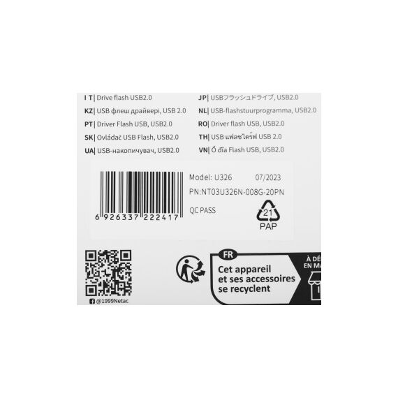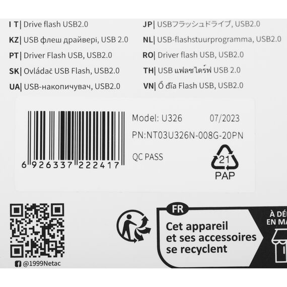 Наличие товара Netac 8Gb U326 [NT03U326N-008G-20PN]