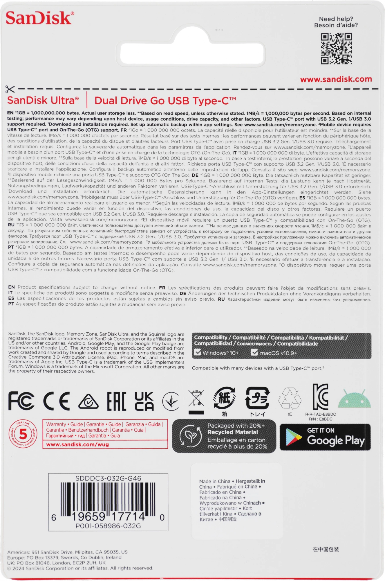 Наличие товара SanDisk 32Gb Ultra Dual Drive Go [SDDDC3-032G-G46]