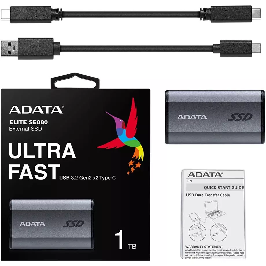 Описание Накопитель SSD A-Data USB-C 1Tb SE880 2.5" серый