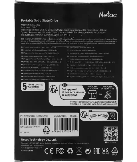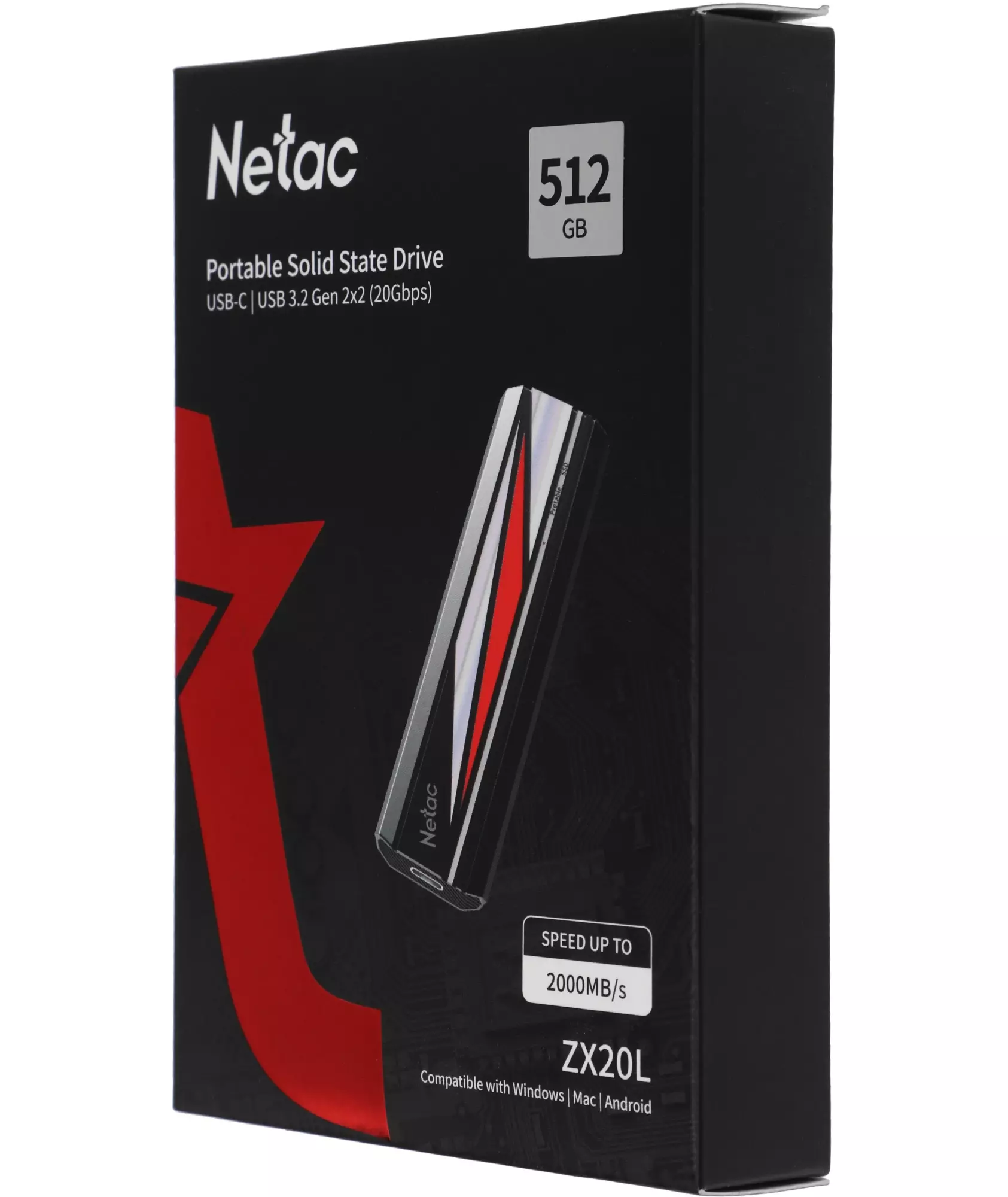 Описание Netac Накопитель SSD USB-C 512GB ZX20L черный