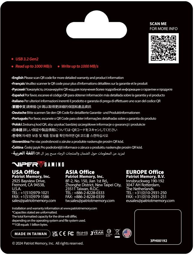 Описание Patriot Накопитель SSD USB-C 2TB Viper PVP30 2.5" черный USB-A