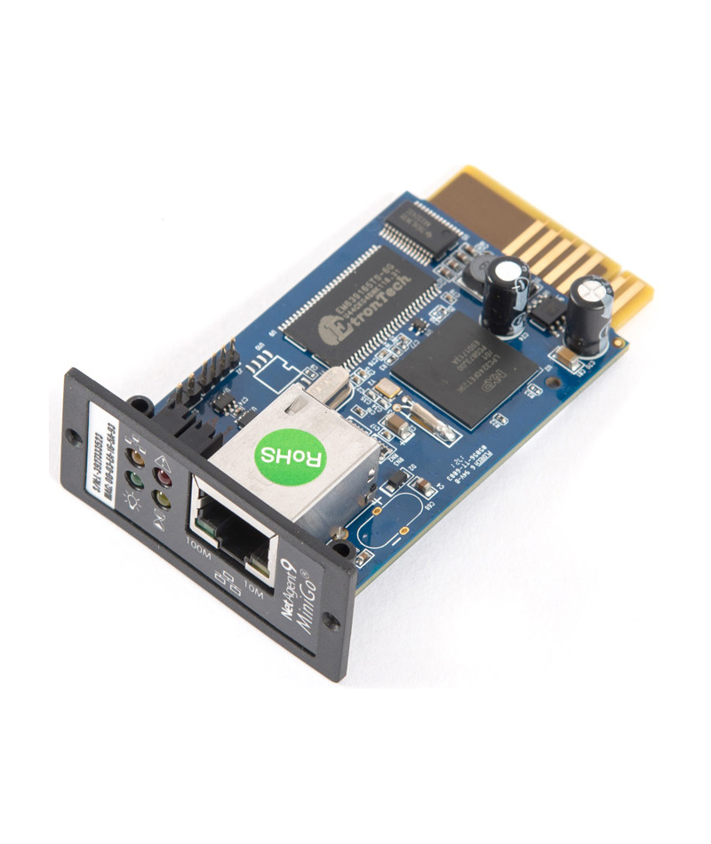 SNMP-модуль для SKAT UPS 1000 RACK, SKAT UPS 2000 RACK и SKAT UPS 3000 RACK. Мониторинг и управление ИБП в компьютерной сети с обеспечением автоматического корректного завершения работы серверов и рабочих станций. Автоопределение 10M/100M Fast Ethernet. Управление и конфигурация через Telnet, Web-браузер или NMS. Поддержка протоколов TCP/IP, UDP, SNMP, Telnet, SNTP, PPP, HTTP, SMTP.