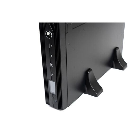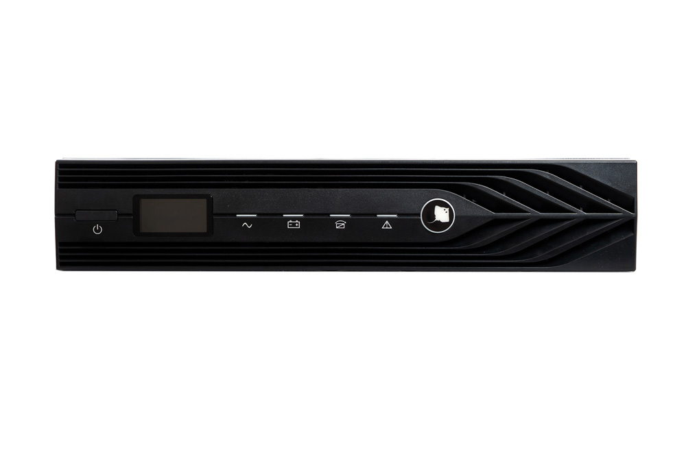 - 220 В, 1000 ВА (900 Вт), Online, синусоидальная форма выходного напряжения, световая и звуковая индикация режимов работы, ЖК-дисплей. Встроенный АКБ 9 Ач, 2 шт, время резерва — 3 мин. Дистанционный мониторинг по RS 232, USB, порт для платы релейного интерфейса. Возможность подключения SNMP-модулей DL 801 и DA 806. Функция удалённого аварийного отключения выходного напряжения (EPO). Корпус под 19" шкаф, высота 2U или настольная установка.
