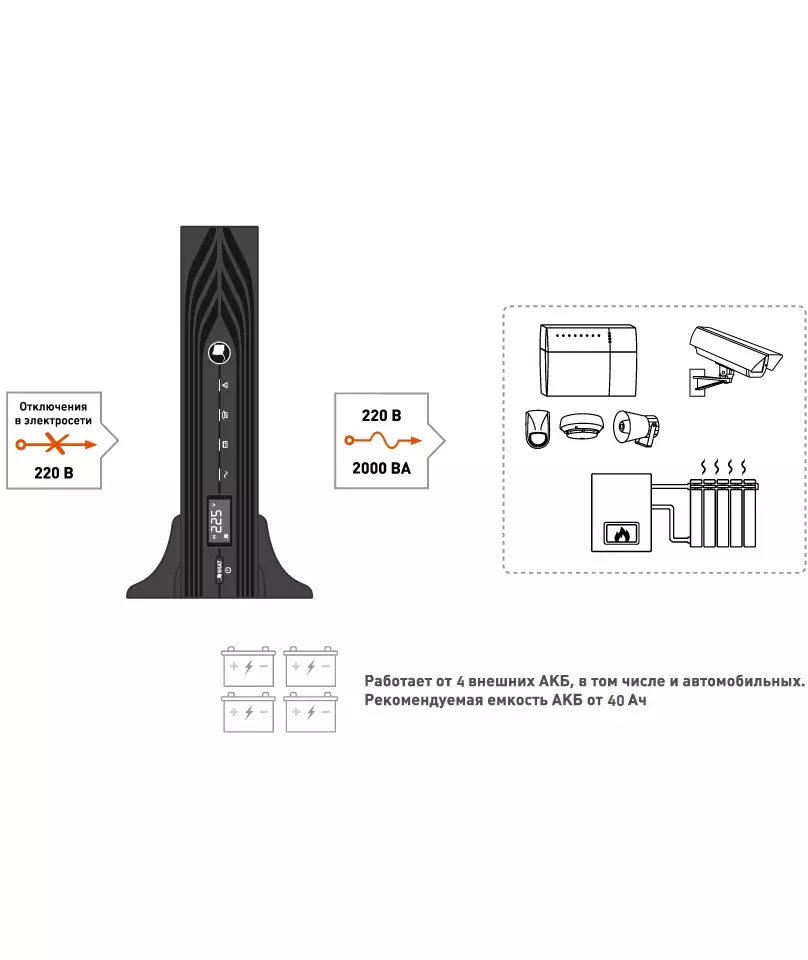 - Тип: ИБП с двойным преобразованием ("онлайн")