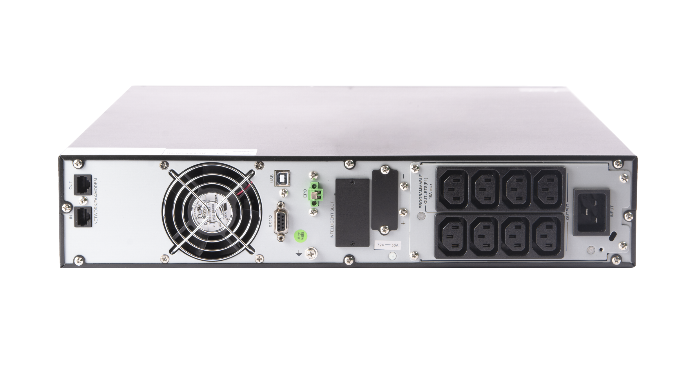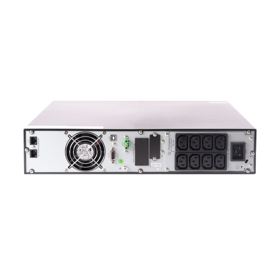 Модель является однофазным ИБП типа On-line с мощностью 2000 ВА / 2000 Вт. ИБП укомплектован шестью аккумуляторами 12 В/ 9 Ач с напряжением 72 В. Доступно подключение как дополнительных батарейных блоков, так и внешних АКБ. ИБП данной серии возможно установить как в шкаф 19”, так и в формате Tower c помощью специального приспособления для напольного размещения — это позволяет интегрировать устройства вне зависимости от предоставляемых условий.