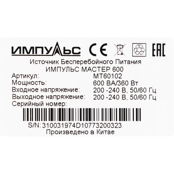 Описание ИМПУЛЬС Мастер 600 [MT60102]
