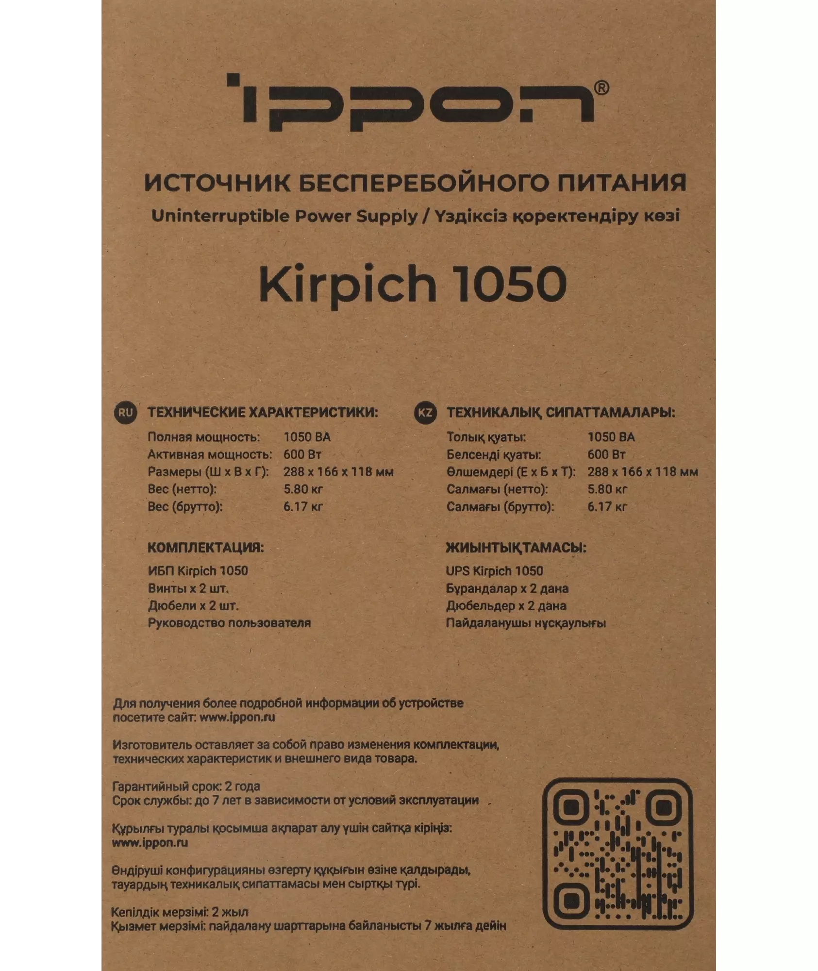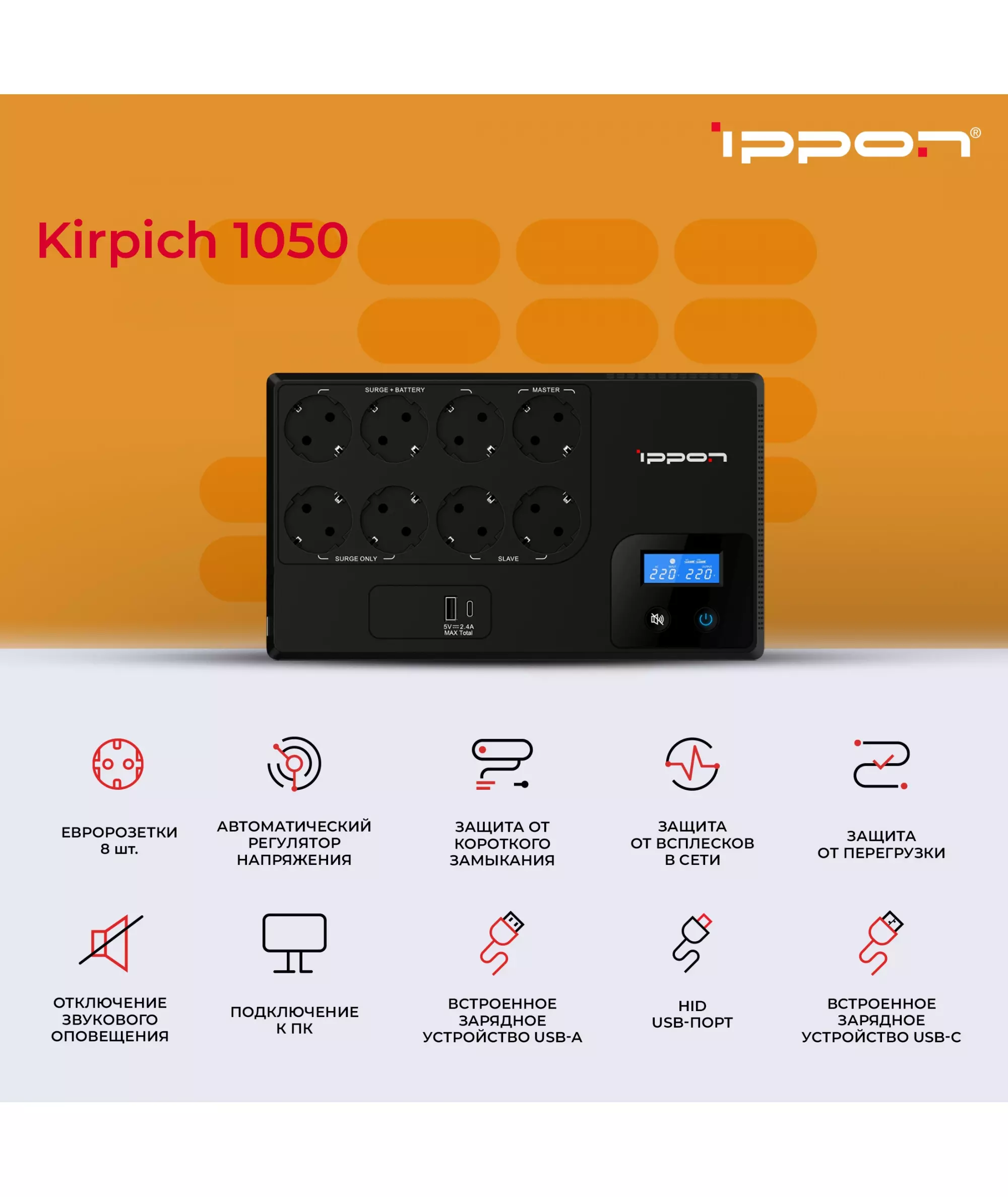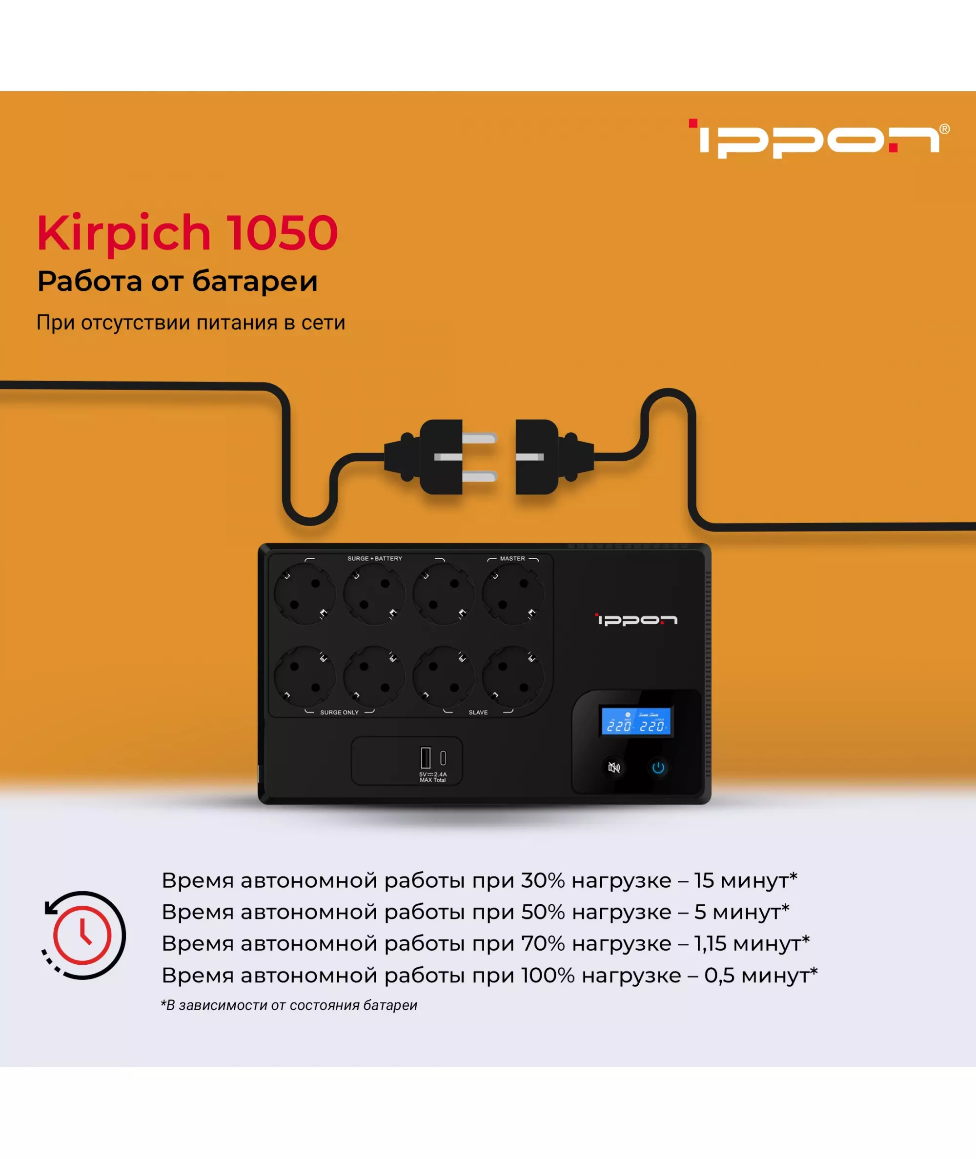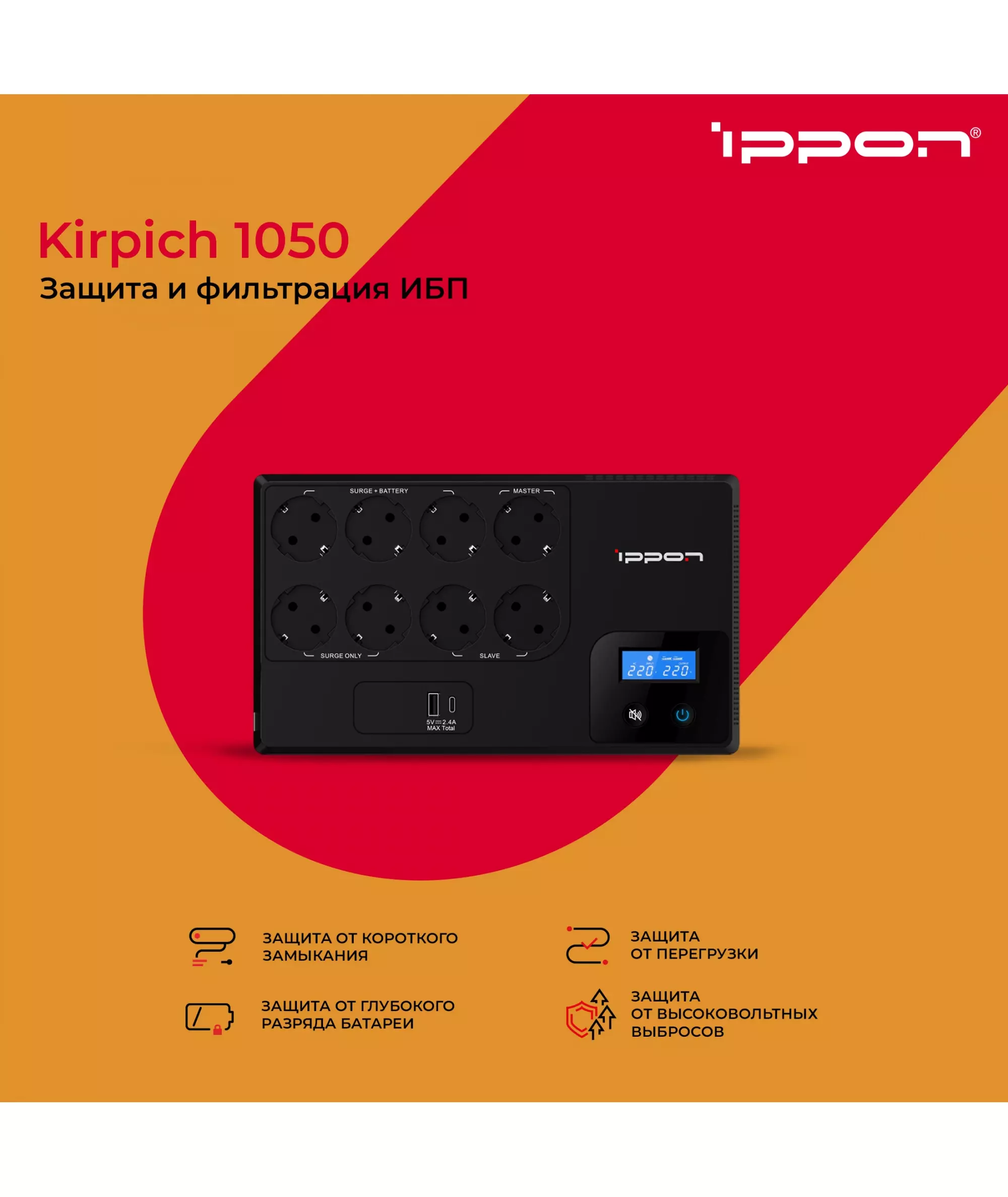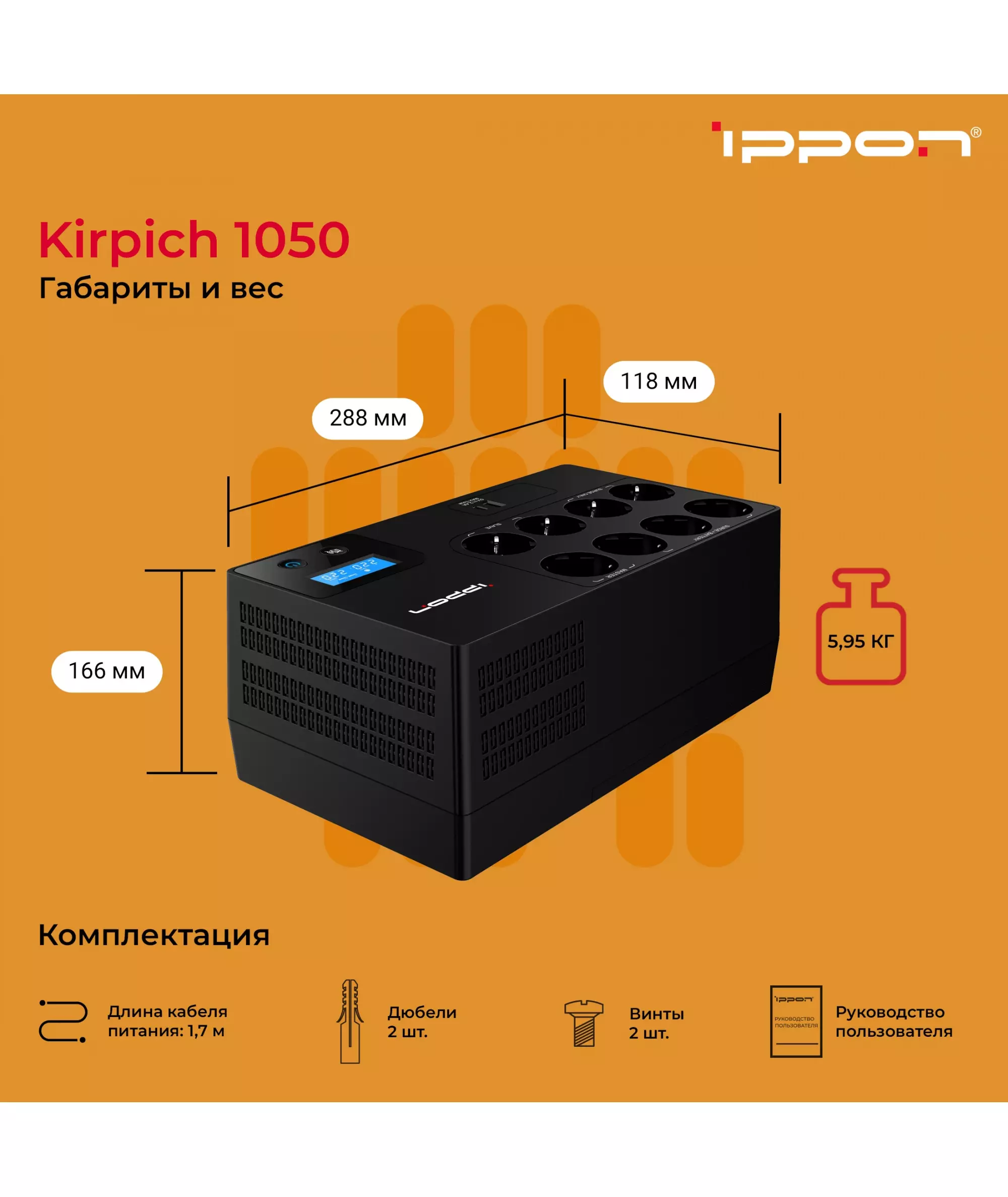 Источник бесперебойного питания Ippon Kirpich 1050 600Вт 1050ВА черный [2003038]