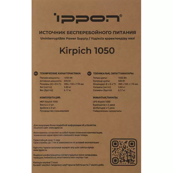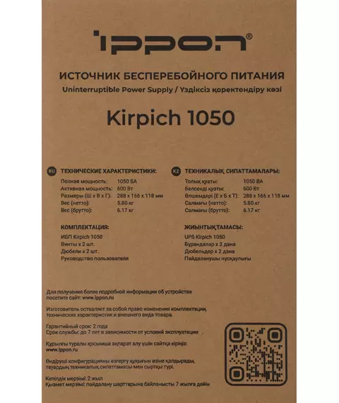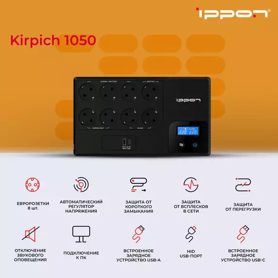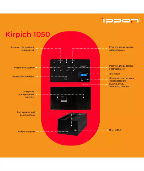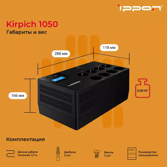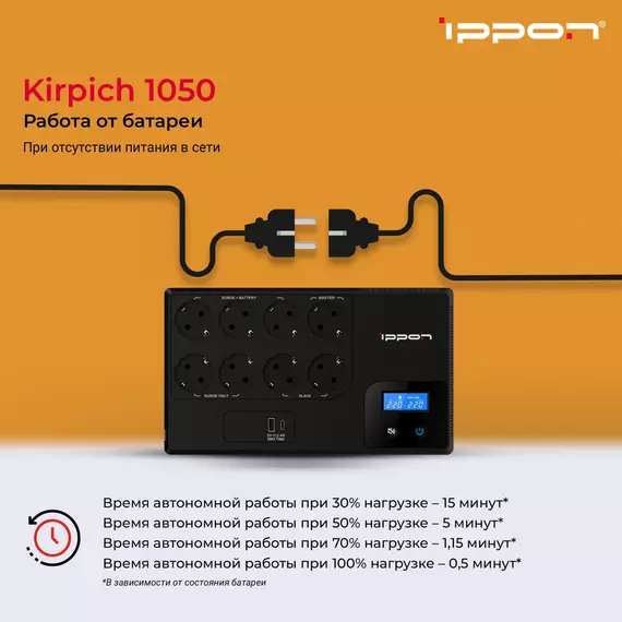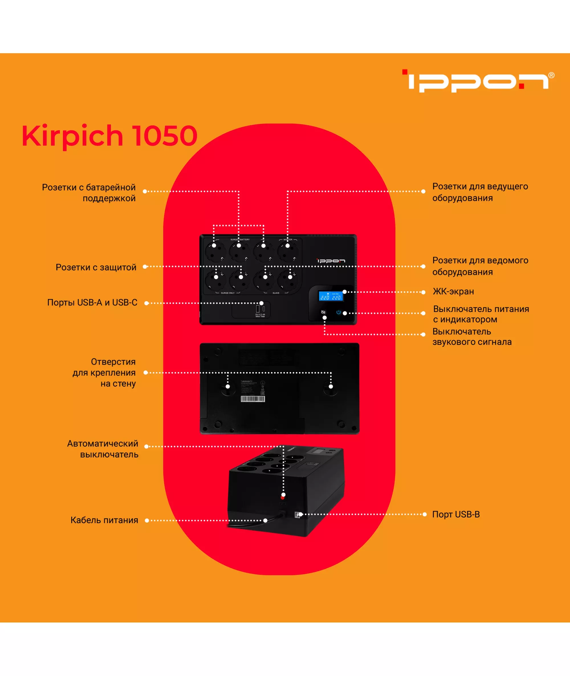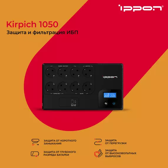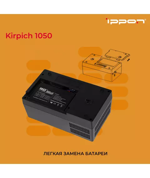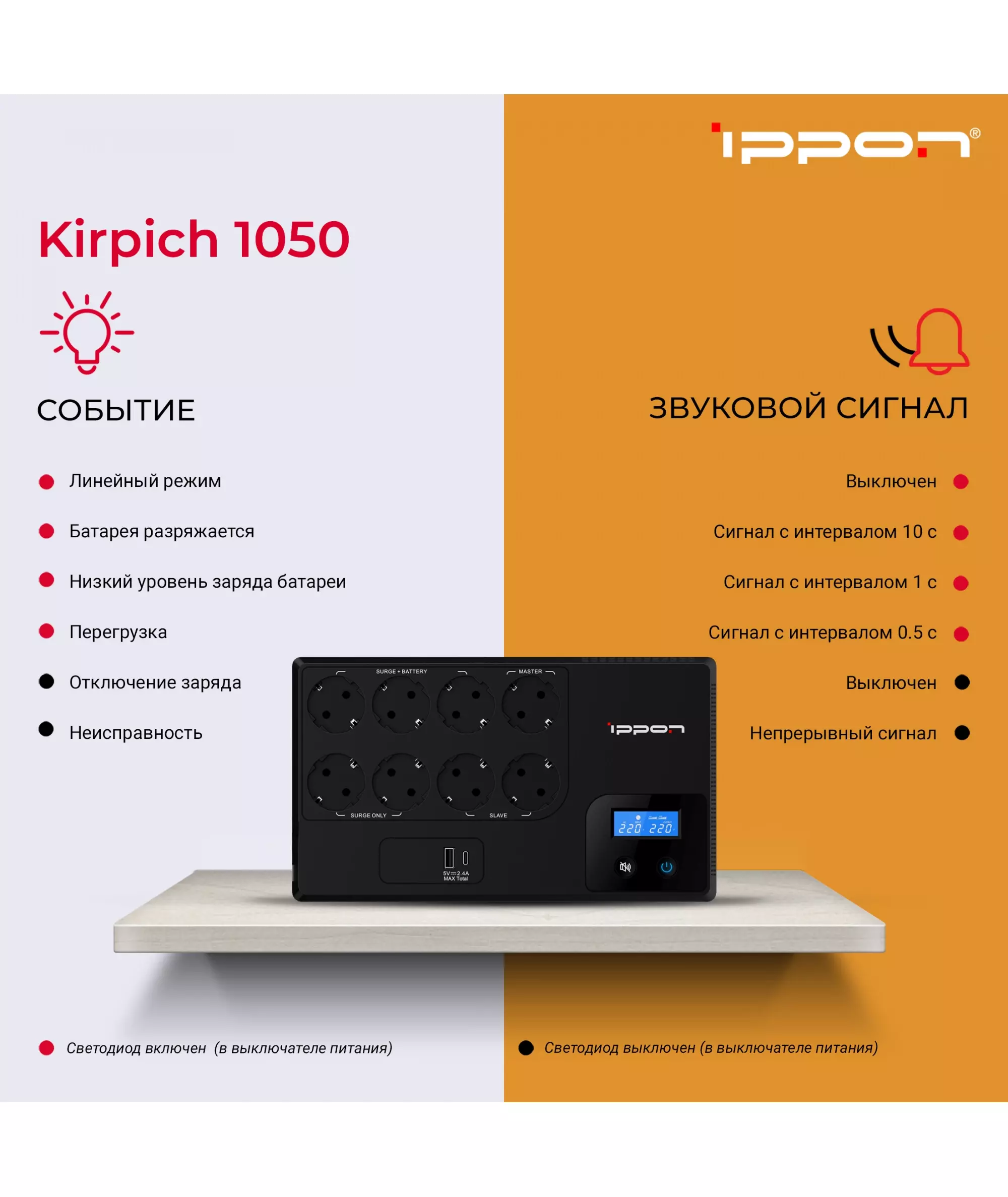 Источник бесперебойного питания Ippon Kirpich 1050 600Вт 1050ВА черный [2003038]