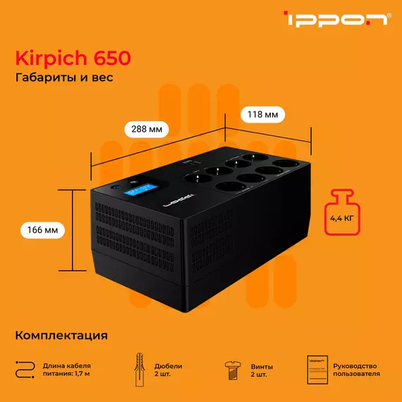 Источник бесперебойного питания Ippon Kirpich 650 360Вт 650ВА черный [2003035]