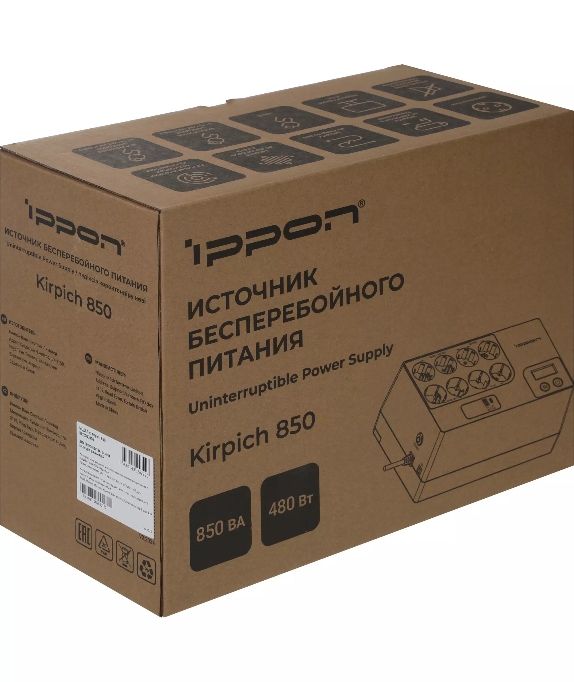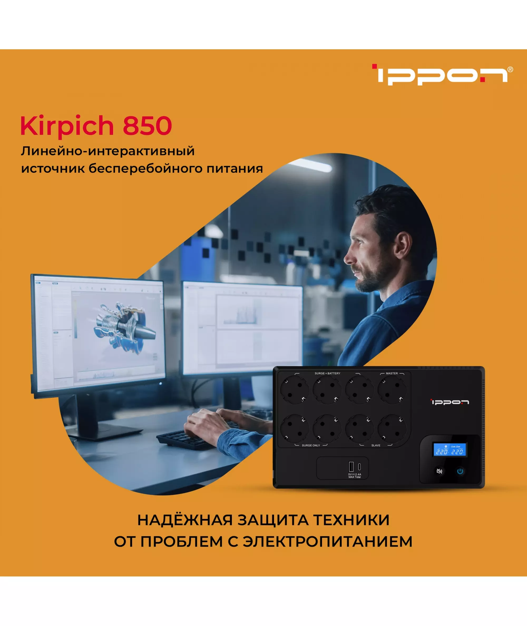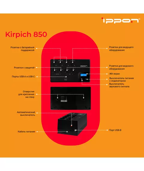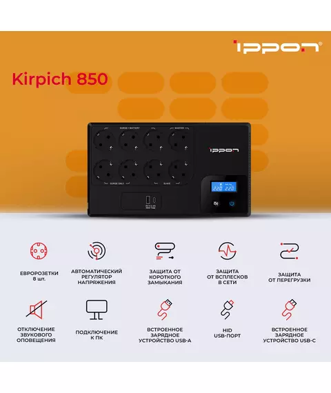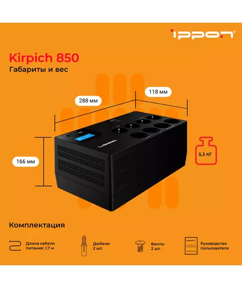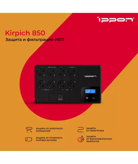 Источник бесперебойного питания Ippon Kirpich 850 480Вт 850ВА черный [2003036]