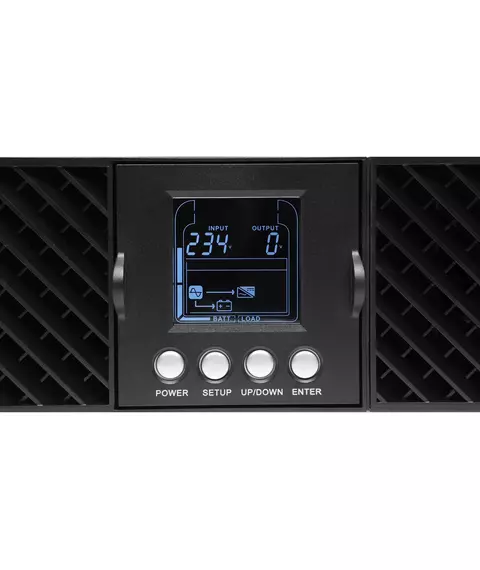 | Индикация состояния | ЖКИ с подсветкой, отображающий цифровую величину входного и выходного напряжения, а также величину нагрузки и остаточной емкости батареи, пиктограммы индикации питания от сети, от батареи, режим регулятора. |